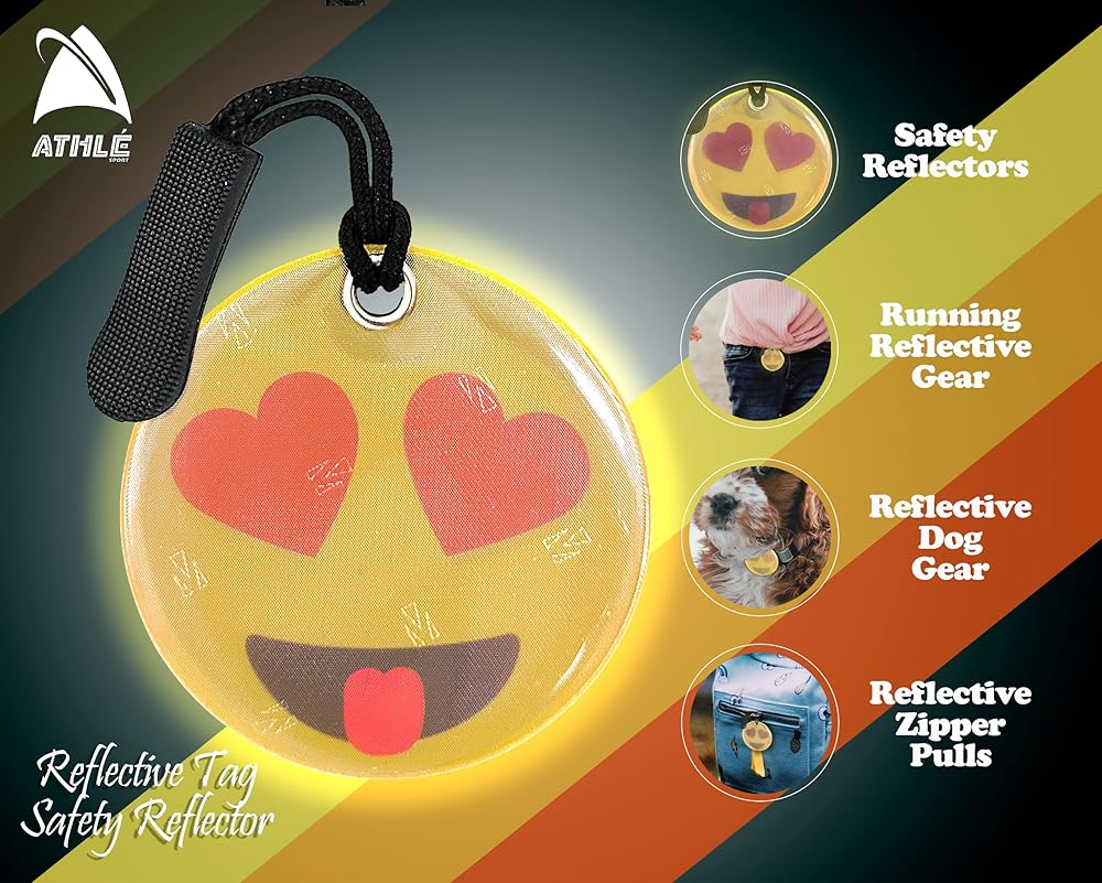 Do your thing in the great outdoors anytime, anywhere with Athlé running reflective gear! With our cute emoji reflector tags, safety is always on your side. Advanced reflective properties and fun unique emoji designs make this a must-have accessory for any person needing added protection and running night gear!