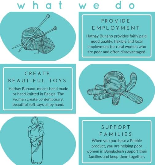 هذه الخشخشة الرائعة من الشمندر سعيدة بقدر الإمكان وتتطلع إلى الانضمام إلى جميع الفواكه والخضروات الأخرى لساعات من اللعب الخيالي! تمت خياطة الخشخشة يدوياً بحب بخيوط قطنية ناعمة زبدة، وهي ناعمة وخفيفة الوزن ومثالية للأيدي الصغيرة للإمساك بها وهزها. بيبل هي علامة تجارية لأكسسوارات الأطفال من مصادر تراعي تشريعات التجارة العادلة وعضو مضمون في منظمة التجارة العادلة. كل لعبة بيبل مصنوعة يدويًا بحب على يد حرفيين في بنجلاديش بتصميم عصري رائع.