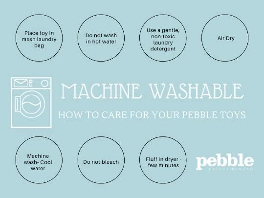 يمكن غسلها في الغسالة: للحصول على أفضل النتائج، ضع لعبة بيبل في كيس شبكي ثم اغسليها بماء بارد ومنظف غير سام. جففي المجفف لبضع دقائق ثم جففيه بالهواء