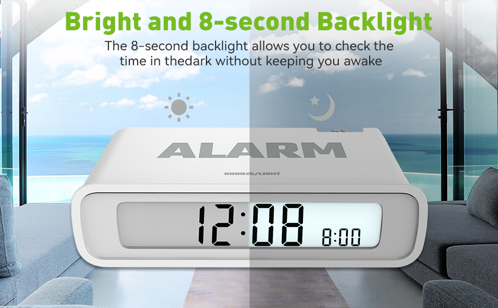 【أرقام كبيرة وواضحة】 - شاشة عرض مقاس 3.15 بوصة × 0.63 بوصة، الأرقام كبيرة وواضحة، تسمح لك الإضاءة الخلفية لمدة 8 ثوانٍ بالتحقق من الوقت في الظلام دون إبقائك مستيقظًا. مثالية في غرف النوم وغرف الأطفال والفصول الدراسية والتخييم التدريبات، أو يجب أن يكون للمسافرين والنوم الثقيل.
