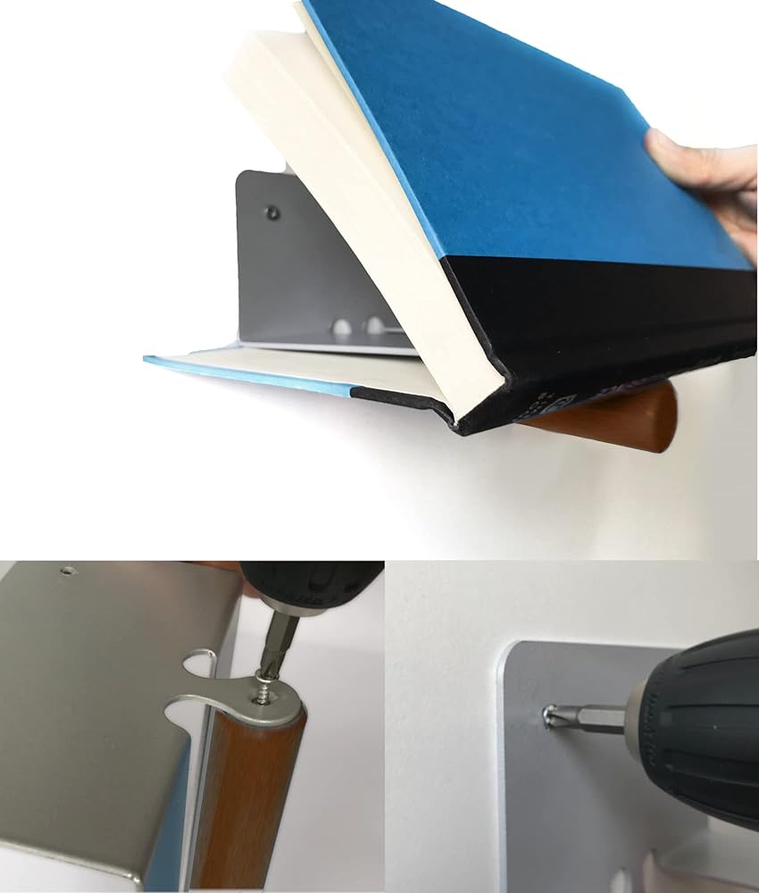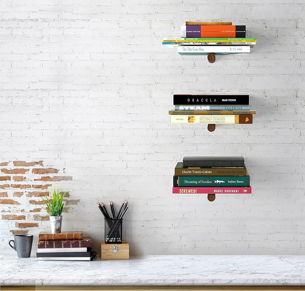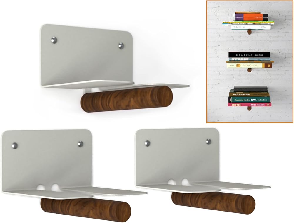 رف كتب عائم غير مرئي مع قضيب خشبي مزخرف، مثالي للديكور ومنظم موفر للمساحة للكتب، للمنزل والمكتب، رف معدني مخفي داخل الكتب.