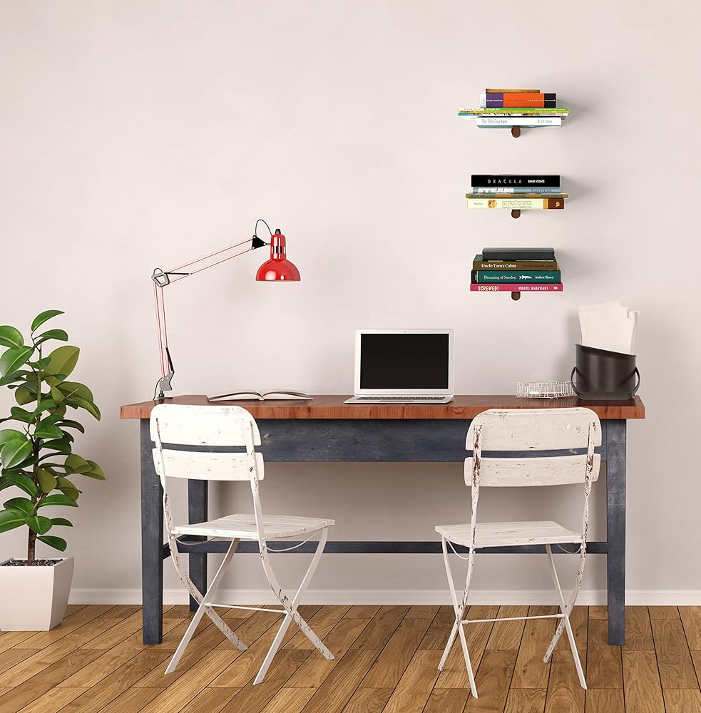 توفير المساحة: الأرفف العائمة مثالية للمساحات الصغيرة التي ليست كبيرة بما يكفي لخزانة الكتب التقليدية. تبلغ أبعاد الرف المعدني العائم حوالي 4.95 × 5.9 × 3.15 انش، مما يسمح لك باستخدام مساحة فارغة على الحائط.