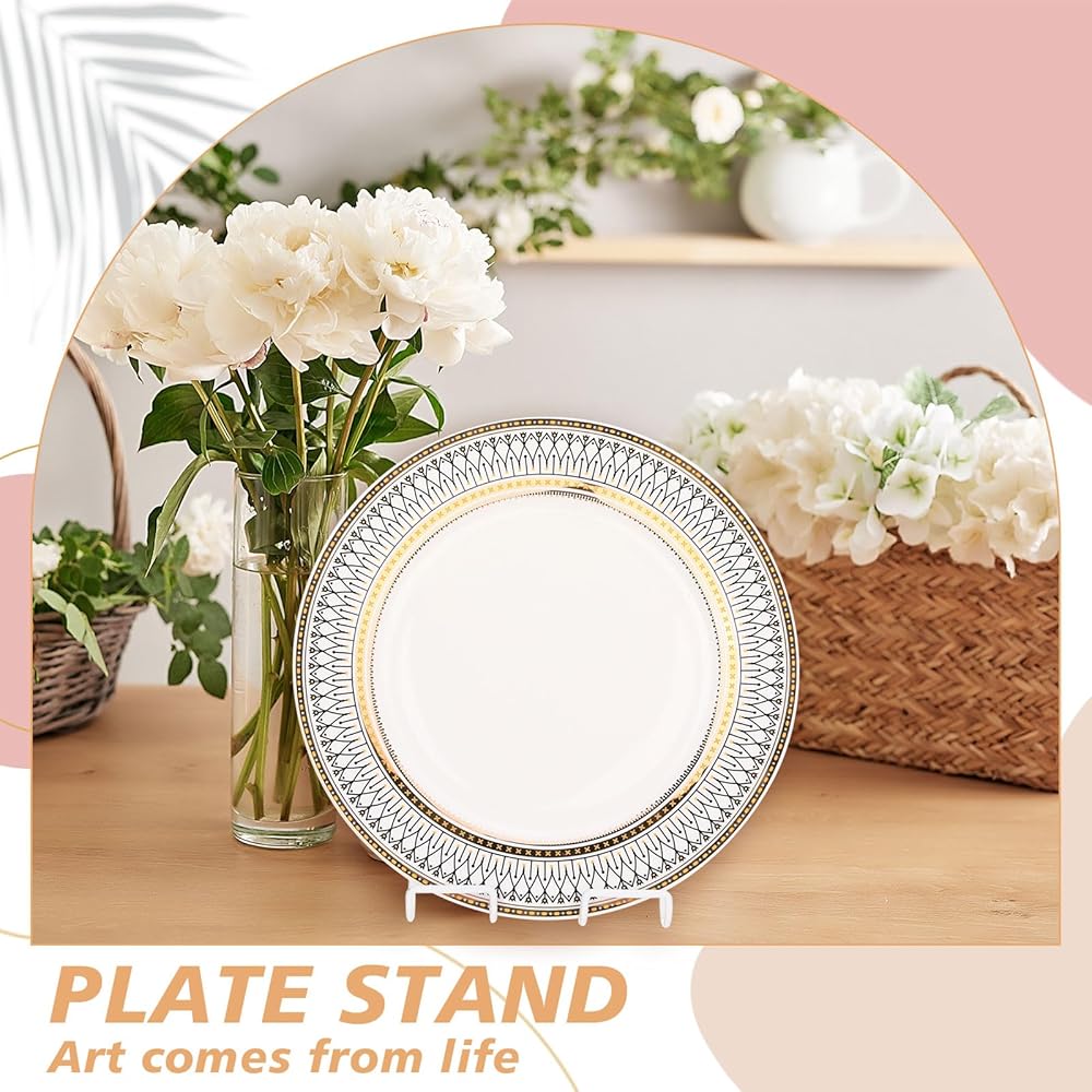 Material Information: these plate display stands are made of sturdy and tough metal material with its strong load bearing; You can safely place your beloved on this bracket, giving you convenience display needs