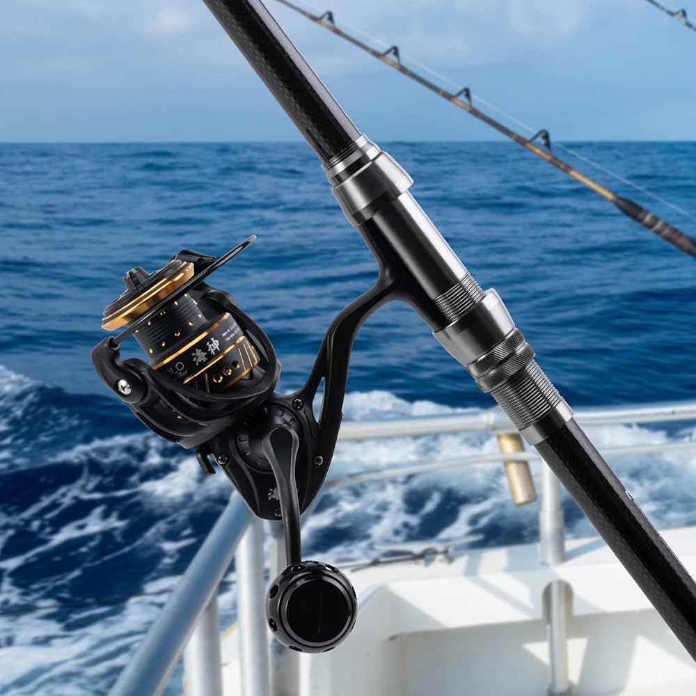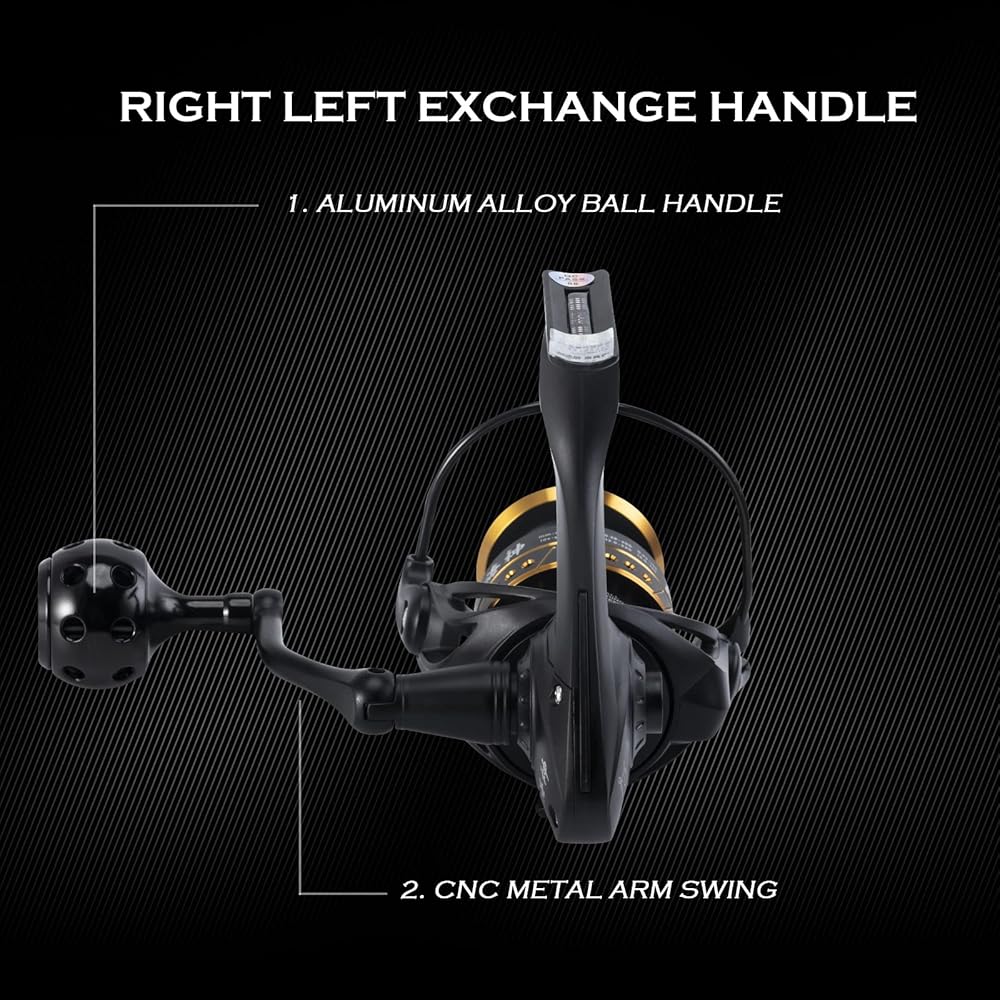 【خفيفة الوزن وقوية】 استمتع بالتوازن المثالي بين التصميم خفيف الوزن والقوة الاستثنائية مع بكرة الغزل الخاصة بنا. يضمن الجسم المصنوع من النايلون عالي القوة تقليل الوزن دون المساس بالمتانة. مثالية لصيد الأسماك في المياه المالحة والمياه العذبة.