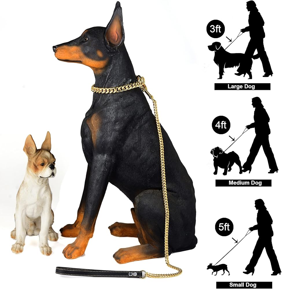 • Who Needs this Leash? : Do you have a dog that likes to pull or chew? If yes, then this metal leash is perfect! The luxurious Miami Cuban link chain leash looks cool on both male and female dogs. It's designed for small and medium and large active breed dogs like Cavapoo, Jack Russell, Rottweilers, Pitbulls, American Bullys, German Shepherds, Huskys, Newfoundlands, Belgian Malinois, Saint Bernards and English Bulldogs it can handle the rough breeds.