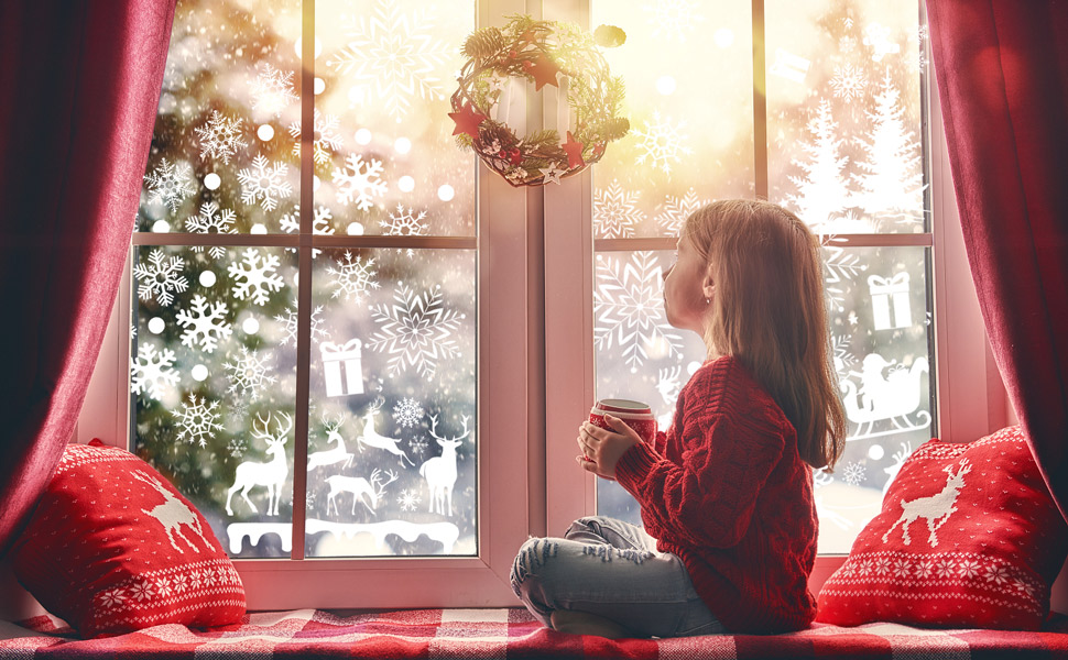 ☃آمنة وسهلة الاستخدام - زينة نافذة عيد الميلاد مصنوعة من مادة البولي فينيل كلوريد ذات الغشاء الكهروستاتيكي. لا حاجة إلى لاصق أو غراء، كما يمكن إزالته دون بقايا. قوي التطبيق وسهل التقشير، لن يضر نافذتك، سهل الاستخدام للأطفال.