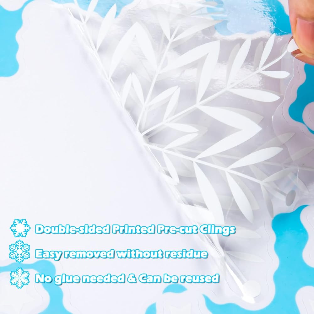 ☃طباعة عالية الدقة على الوجهين -- صور واضحة لندفات الثلج، التصميم ذو الوجهين يوفر مظهرًا داخليًا وخارجيًا. ديكور رائع للنوافذ من أجل جو احتفالي. فقط قم بتنظيف سطح الجسم قبل اللصق، وسيعمل ملصق النافذة بشكل صحيح لفترة طويلة.