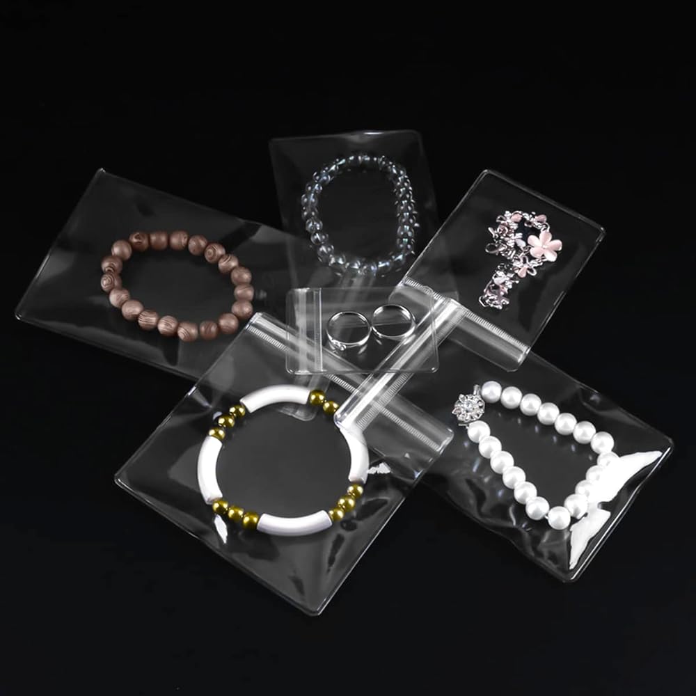 أكياس PVC الشفافة للمجوهرات المضادة للأكسدة بسحاب 100 قطعة من حلقات المجوهرات المضادة للتشوه والأقراط وحقيبة تخزين التعبئة مقاس 3.2 × 4.8 بوصة حقيبة مجوهرات شفافة كيس تخزين سميك محكم الغلق (شفاف)