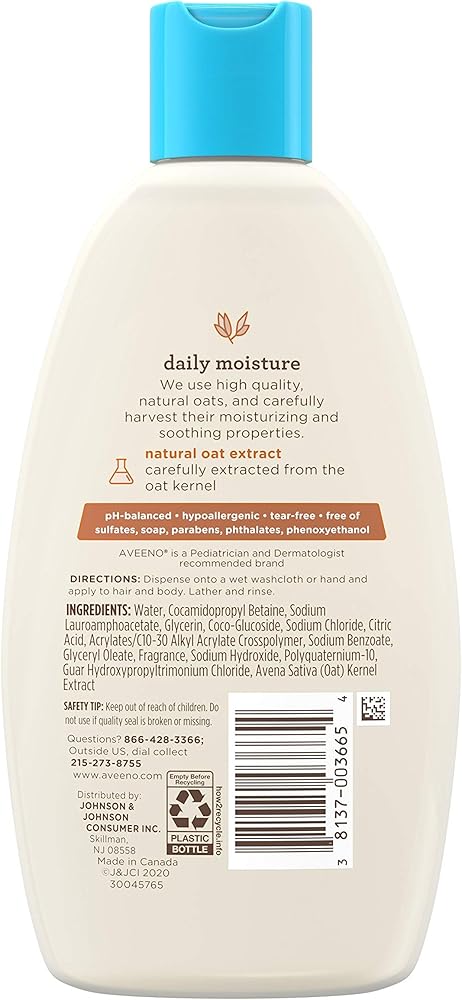 المؤشرات: افينو Baby Wash & Shampoo معطر خفيف. تركيبة الشوفان الطبيعية. خالية من الدموع. تنظيف لطيف للشعر والجسم.