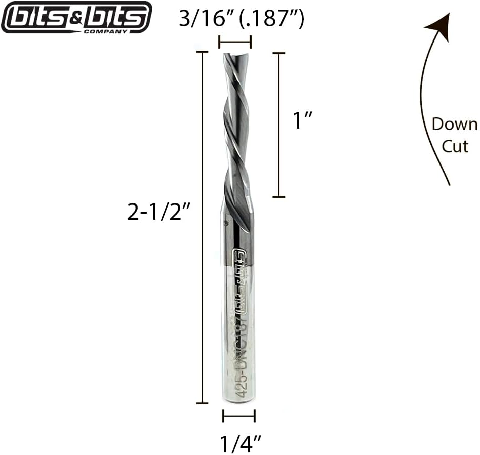 Optimal Kerf for Strength & Precision: Thinner than a 1/4" and stronger than a 1/8", the 3/16" spiral down-cut design ensures smooth, clean cuts with the perfect balance of strength and precision.
