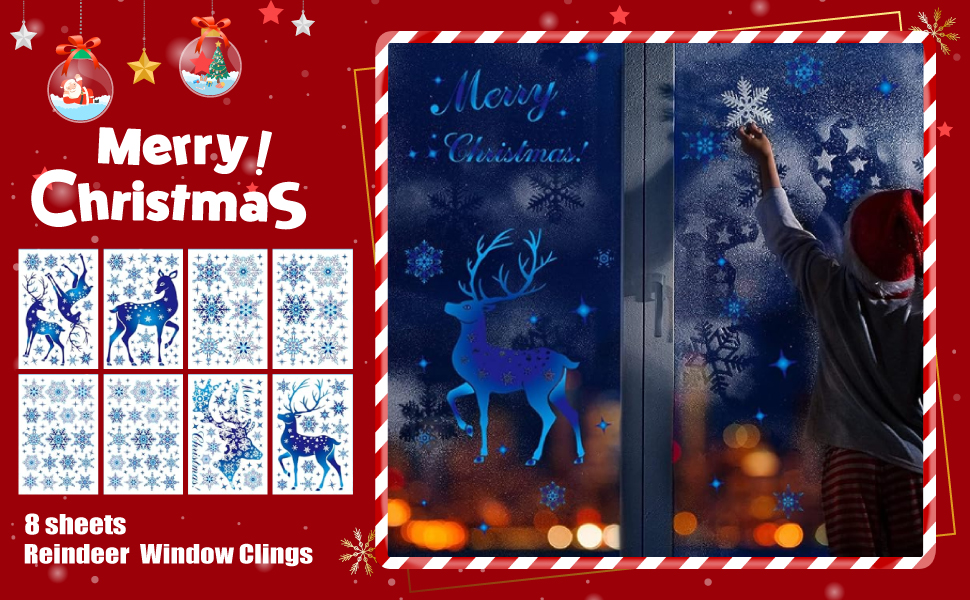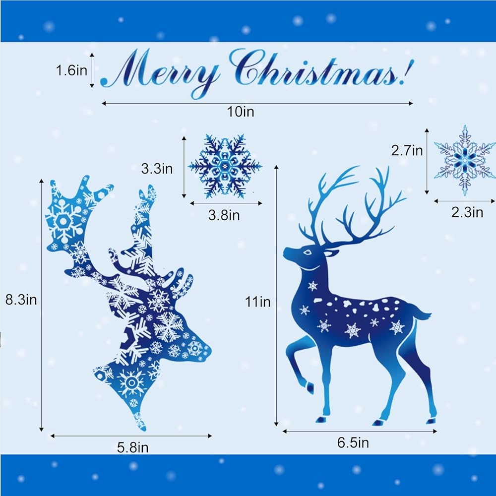 Ideal Christmas Decorations - If you are looking for Christmas decor, our beautiful reindeer windows stickers are perfect for you! The blue decorations looks shining and romantic, will easily create a fairy-tale winter Christmas world for your home and party.