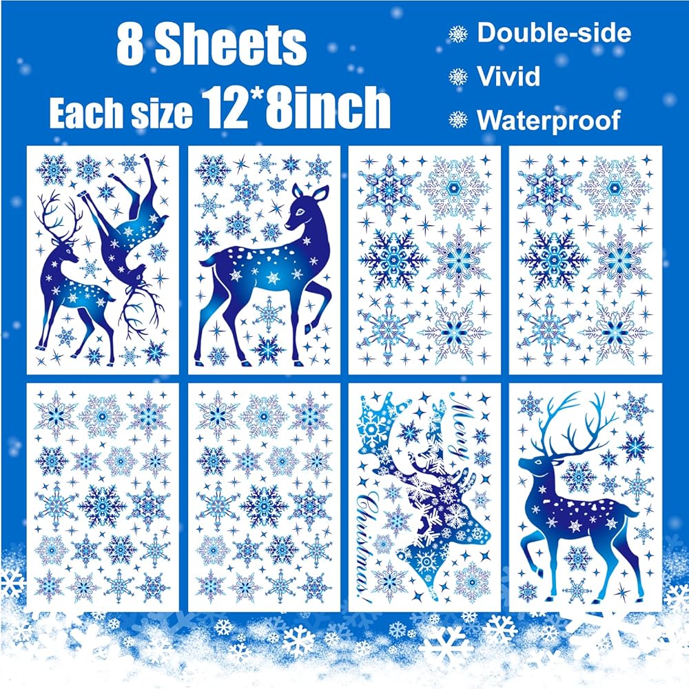 Super Value Pack - You can get 8 sheets window clings, each one is 12"x 8", total 273 pcs Christmas decals.These stickers contain several different patterns of reindeer, snowflake and star etc, every pattern is exquisite, the quantity is enough for you to decorate for Christmas, you can share them with your family and friends.