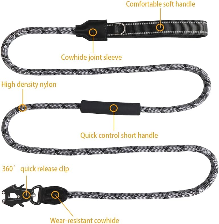 【الحجم】مقود الكلاب للكلاب التي يصل وزنها إلى 165 رطلاً. يبلغ طوله: 6.5 قدم. مقود الكلاب مصمم للكلاب الكبيرة والمتوسطة والصغيرة. الطول مناسب جدًا للجري والمشي مع جروك.