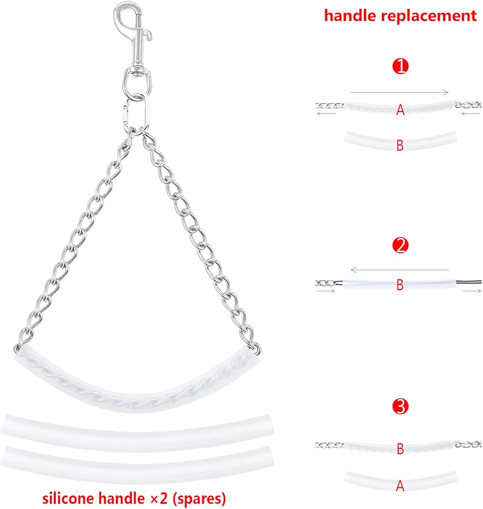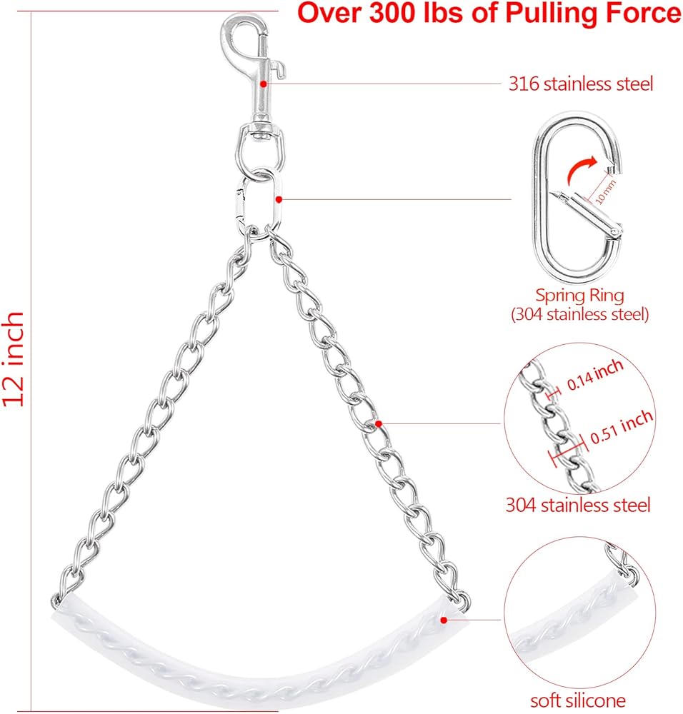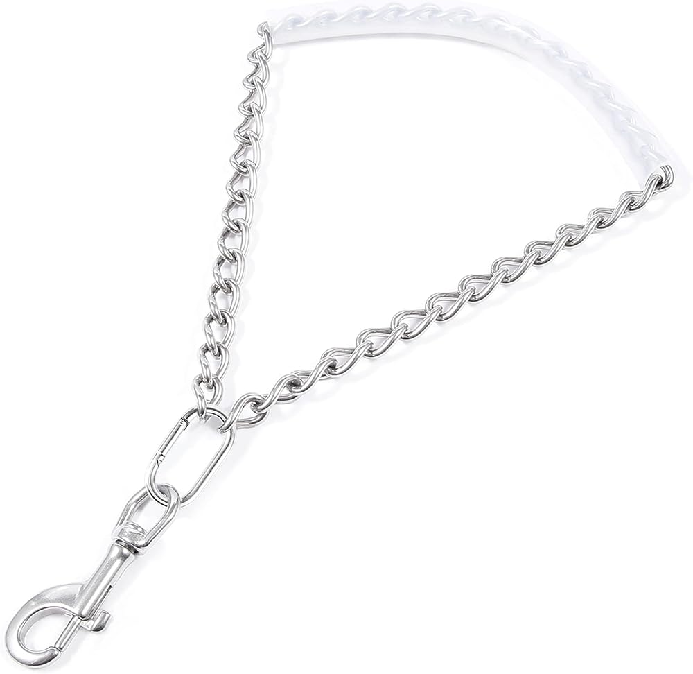 Short dog leash and swiveled clip made from high quality 304 & 316 stainless steel,All steel constitute,simple and practical,you never worry about it breaking!Fully Welded stainless steel short dog chain lead is strong and durable,Over 300 lbs of Pulling Force,Smooth edges Reduce the risk of scratching skin.Heavy duty metal dog chain lead will not tarnish,rust,or break,for years of use.Designed for Medium Large & Extra-Large Size dogs,each chain links consists of 100% welded stainless steel,comes with stainless steel swiveled clip,Anti-rust,Anti-chewing,Non-breaking.Giant dog chain leash can better control the giant dog's behavior,perfect managing dogs at a "heel" position,when through the crowded streets or high distraction environment.The short dog Training Traffic lead leash has soft silicone cushion which makes it really comfortable to hold onto,the cushioned padded handles helps put less strain on your hand when your dog pulls,Suits for Medium Large dogs and Giant dog Walking Traffic Training and Traveling.Short chain dog leash and clip made from high quality 304 & 316 stainless steel,Anti-bite,No-rust,No-fading,No-breaking.Sturdy metal chain pet leash made by seamless welding,you never worry about it breaking,Suit for Big Breeds-Rottweiler,Pitbull,Mastiff.