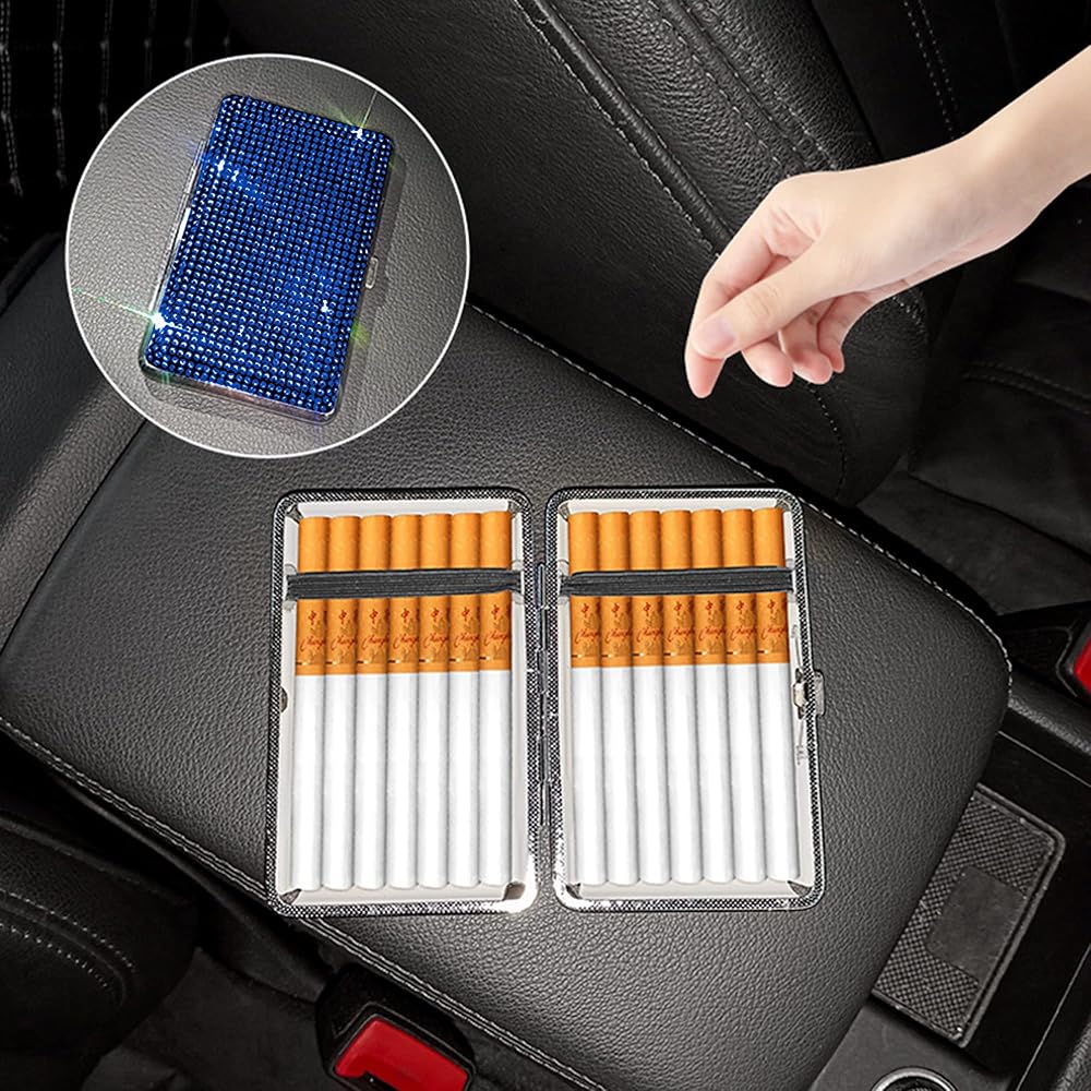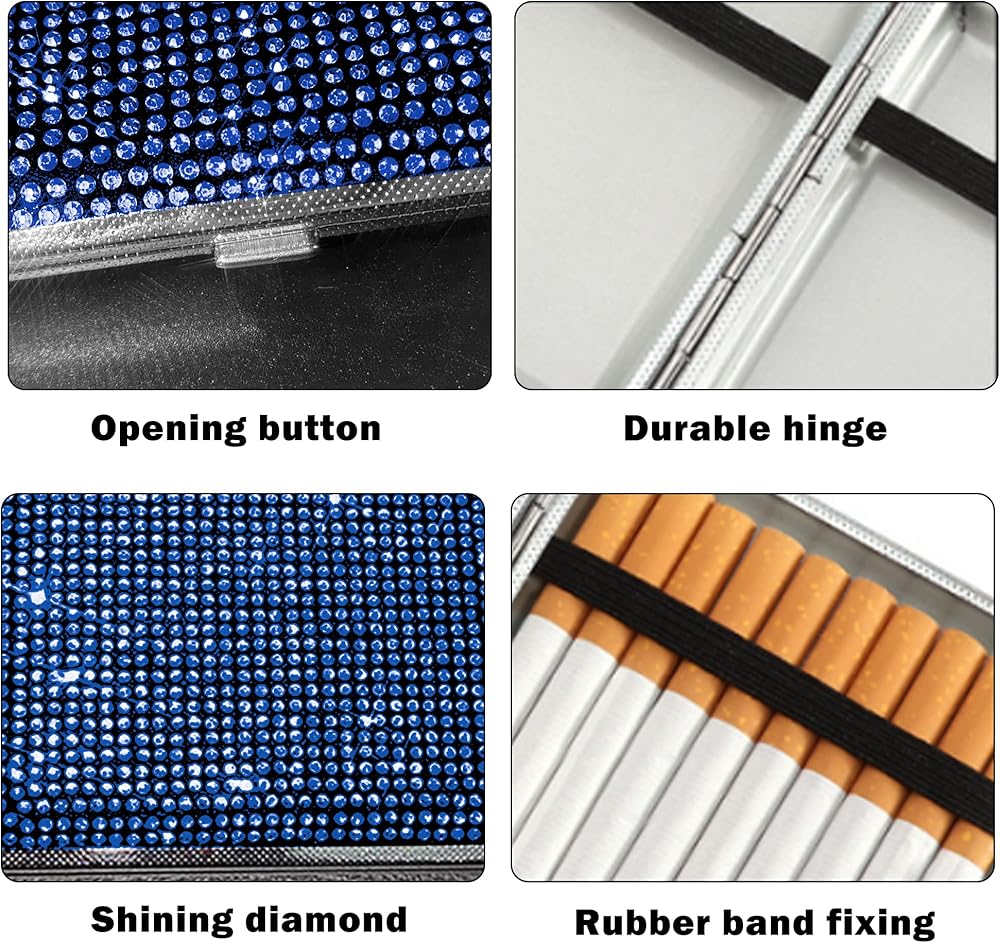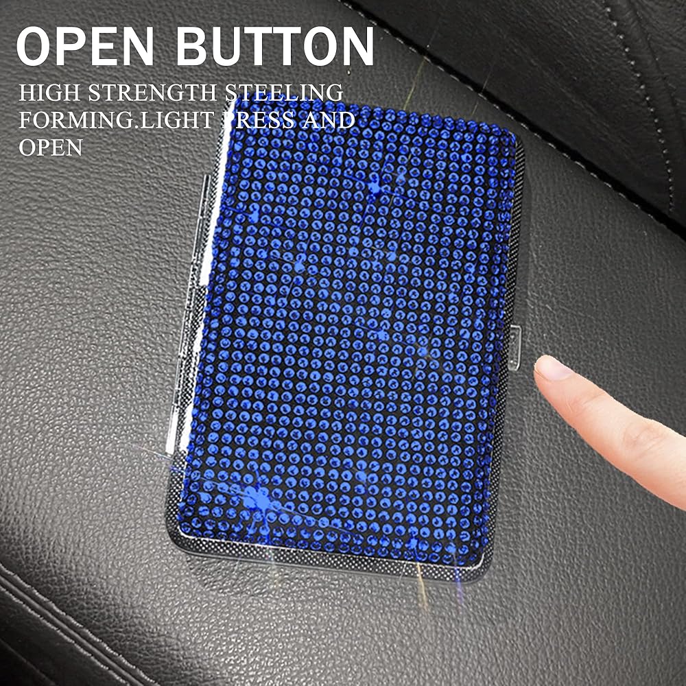 Upgraded Electric Lighter with Bling Crystal and Glitter Rhinestone.Cigarette Case Only for 85mm Cigs, 14-16 Capacity