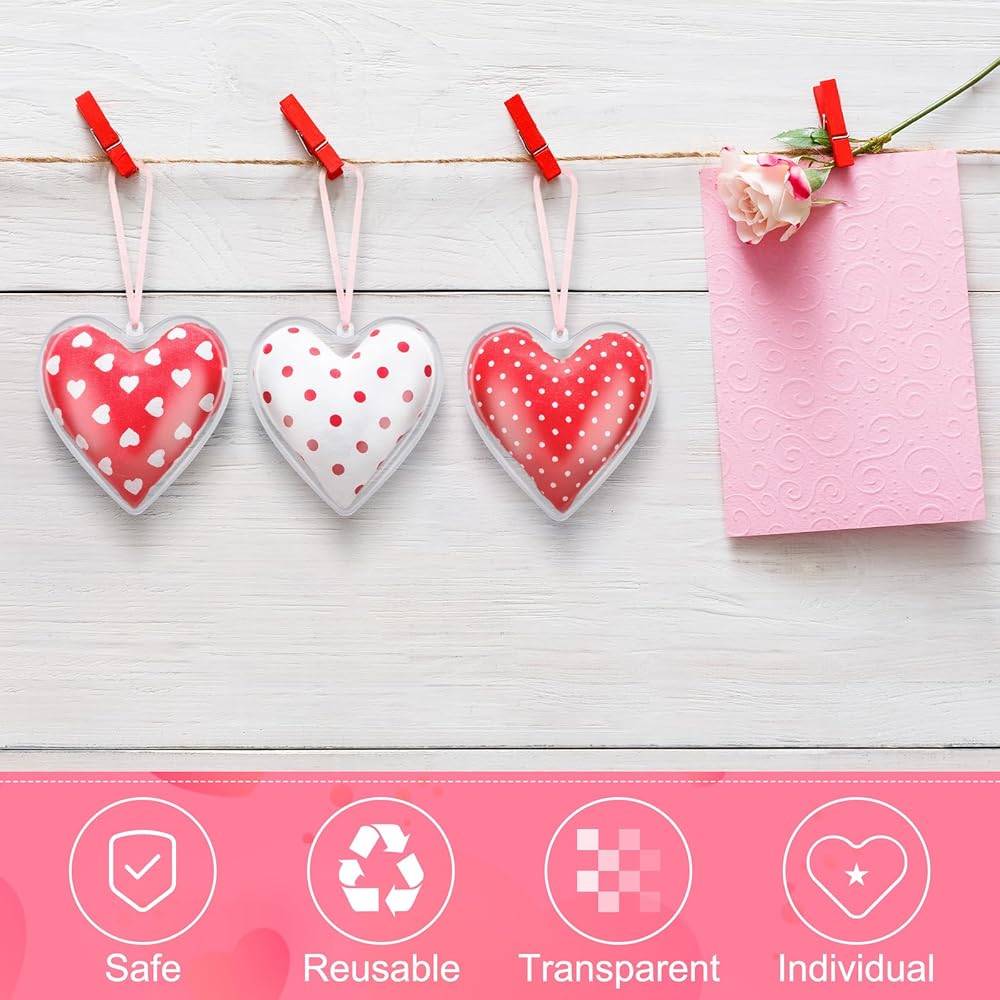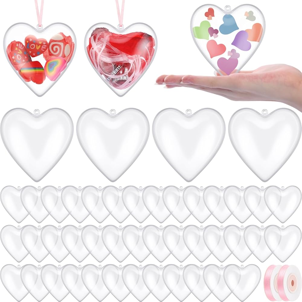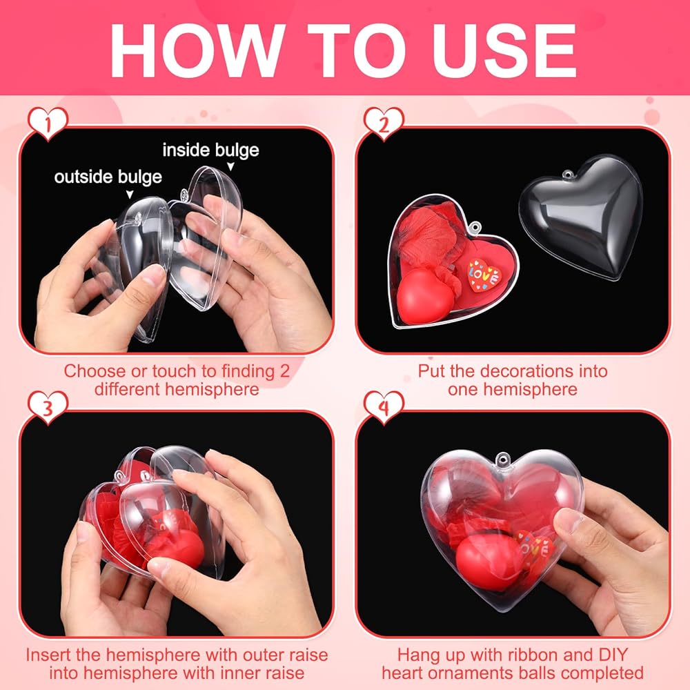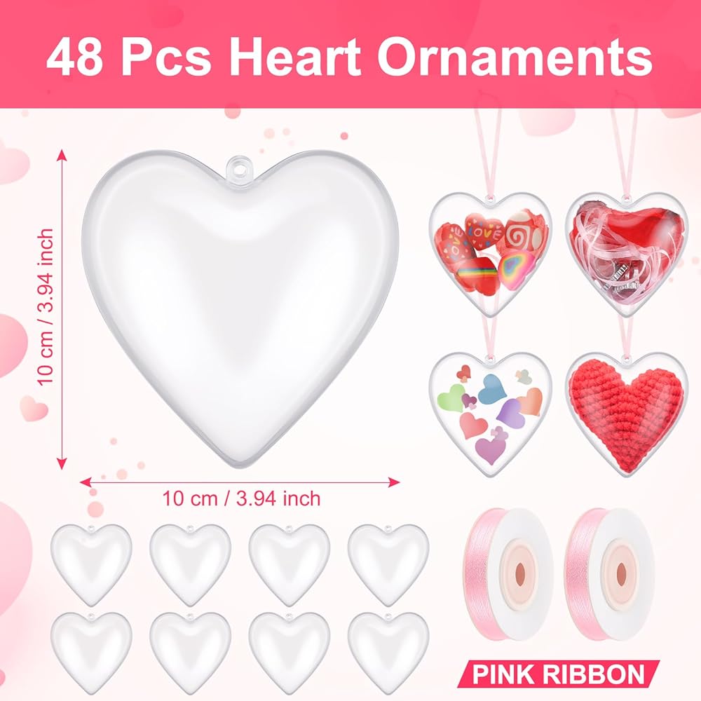 • Package Includes: you will receive 48 pieces of clear plastic fillable heart ornaments balls and 2 rolls of webbing; These Valentine heart ornaments balls can meet all your creative needs