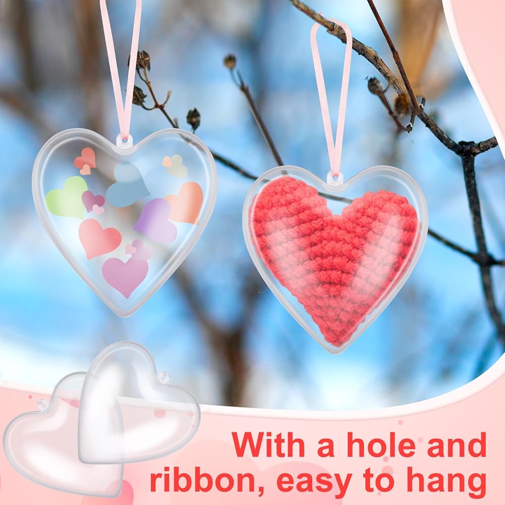 • Quality Material and Suitable Size: these clear heart ornaments are made of plastic, safe, odorless, and durable; After assembly, each size is about 3.94 x 3.94 inch/ 10 x 10 cm; The ribbon is about 0.16 inch/ 0.4 cm in diameter and each roll is about 98.43 ft/ 30 meters in length