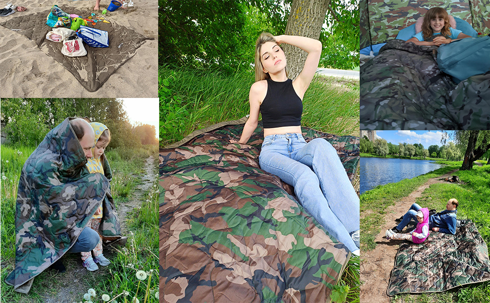 【 خفيفة الوزن وقابلة للتعبئة 】حوالي 55 بوصة × 78.7 بوصة وتزن 1.67 كجم مع كيس ضغط مما يجعل بطانية التخييم الخاصة بنا تتناسب بشكل أنيق مع كيس الأشياء لسهولة الحمل في رحلتك القادمة على الطريق أو مغامرة السفر.