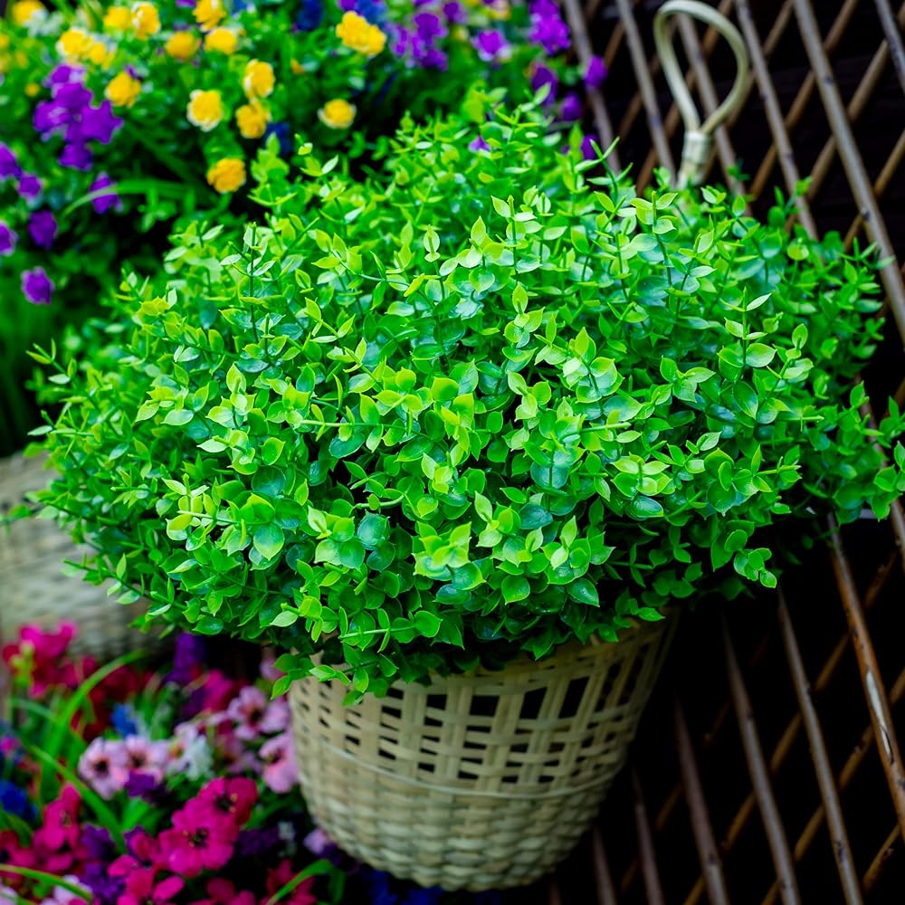 مادة آمنة معتمدة، نباتات شجيرات صناعية ذات لون أخضر مورق تحافظ على ضوء الشمس الربيعي لك في أي وقت، لا تسقط ولا تذبل أبدًا. لون طبيعي منعش، غير سام وغير ضار، مصنوع بشكل جيد وذو ألوان نابضة بالحياة.