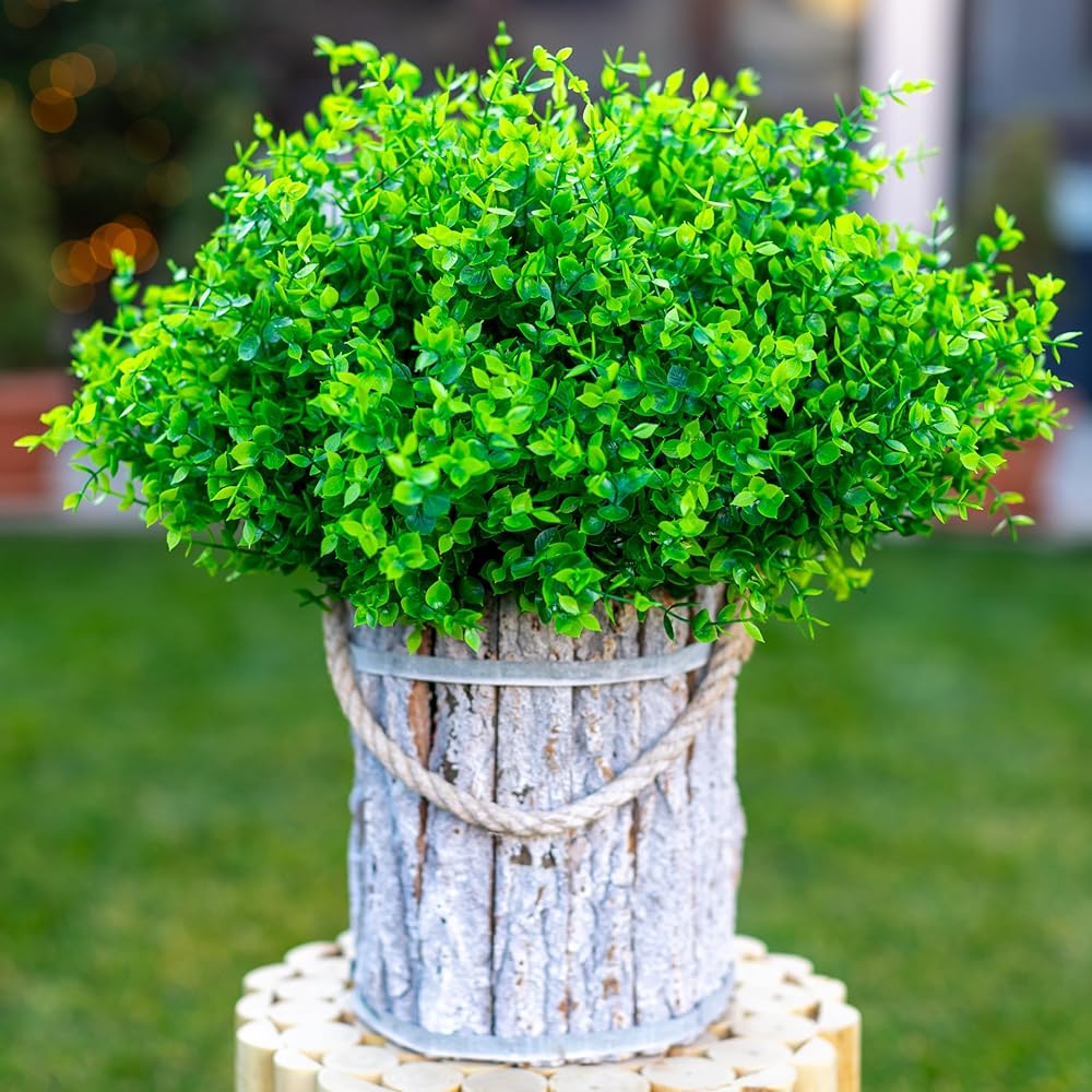 نباتات صناعية في الهواء الطلق شجيرات خشب البقس وهمية - 16 حزمة من النباتات الخضراء الاصطناعية ينبع مقاومة للأشعة فوق البنفسجية لا تتلاشى زهور بلاستيكية صناعية للمزهريات حديقة المزرعة الشرفة الفناء الديكور الزفاف الداخلي (الأخضر)