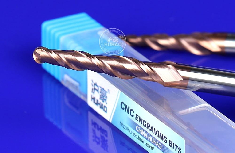 HUHAO مدبب الكرة الأنف نهاية مطحنة 3D القاطع TiSiN المغلفة Hrc55 درجة تفتق النقش بت المعادن راوتر بت