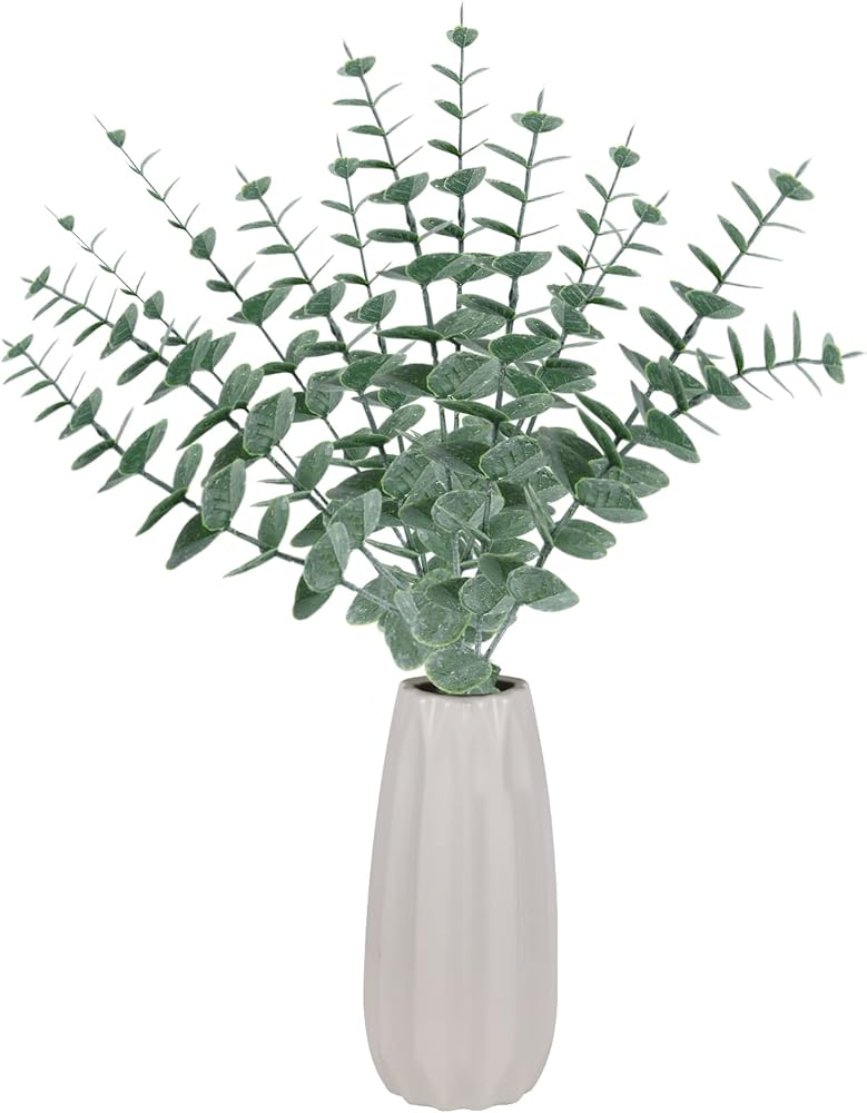 سيقان الاوكالبتوس الصناعية 12 قطعة من اوراق الاوكالبتوس الصناعية، فروع خضراء، 15 انش، باقات نبات الاوكالبتوس المصنفر المزيف، اوراق شجر اصطناعية داخلية لتزيين المزهرية، ديكور الزفاف