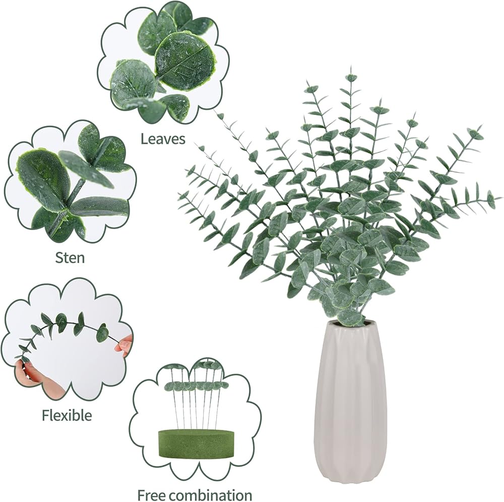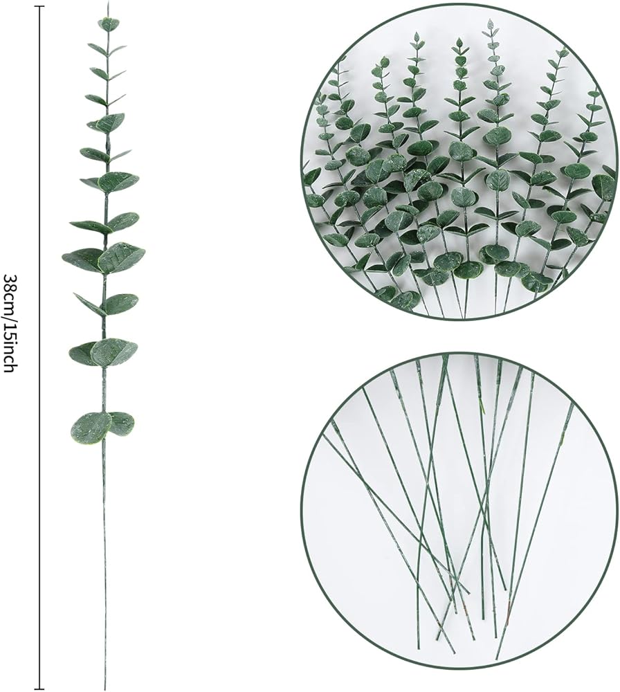 تأتي نباتات الأوكالبتوس المزيفة بأوراق نابضة بالحياة مع صقيع طبيعي صناعي، مظهر طبيعي، مثالية للمناسبات الكلاسيكية.