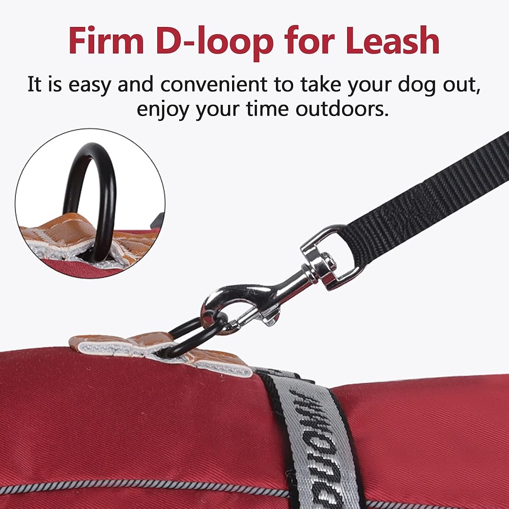 【حلقات الجر والأشرطة العاكسة】تتميز معاطف الطقس البارد للكلاب بحلقة قوية على شكل حرف D وشريط عاكس للضوء عالي الجودة في الخلف، وهي أكثر أمانًا وأفضل تحكمًا في وضع كلبك ليلاً ونهارًا.