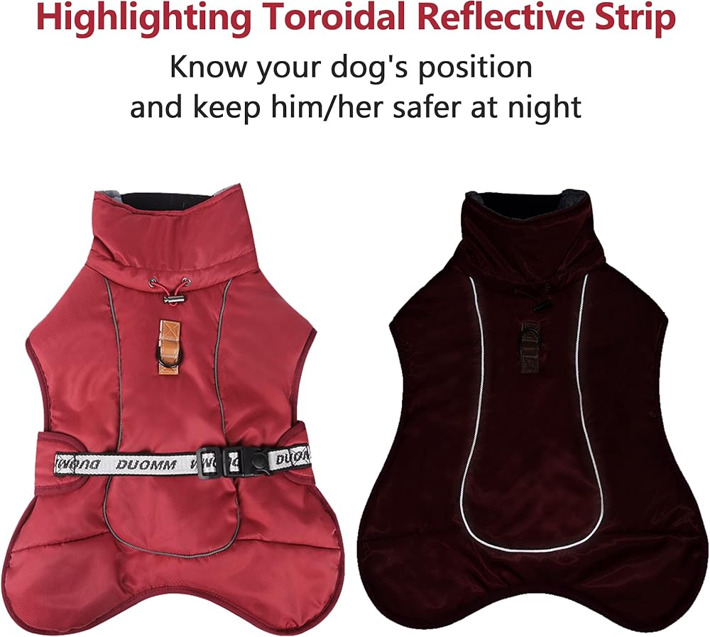 【مقاوم للرياح ومقاوم للماء】سطح معطف الشتاء للكلاب مصنوع من البوليستر المقاوم للرياح والمطر ومبطن بالقطن المصقول، وسترة الطوارئ الدافئة تحافظ على دفء كلبك وراحته وجفافه في الأيام الباردة أو الثلجية عندما تكون بالخارج.