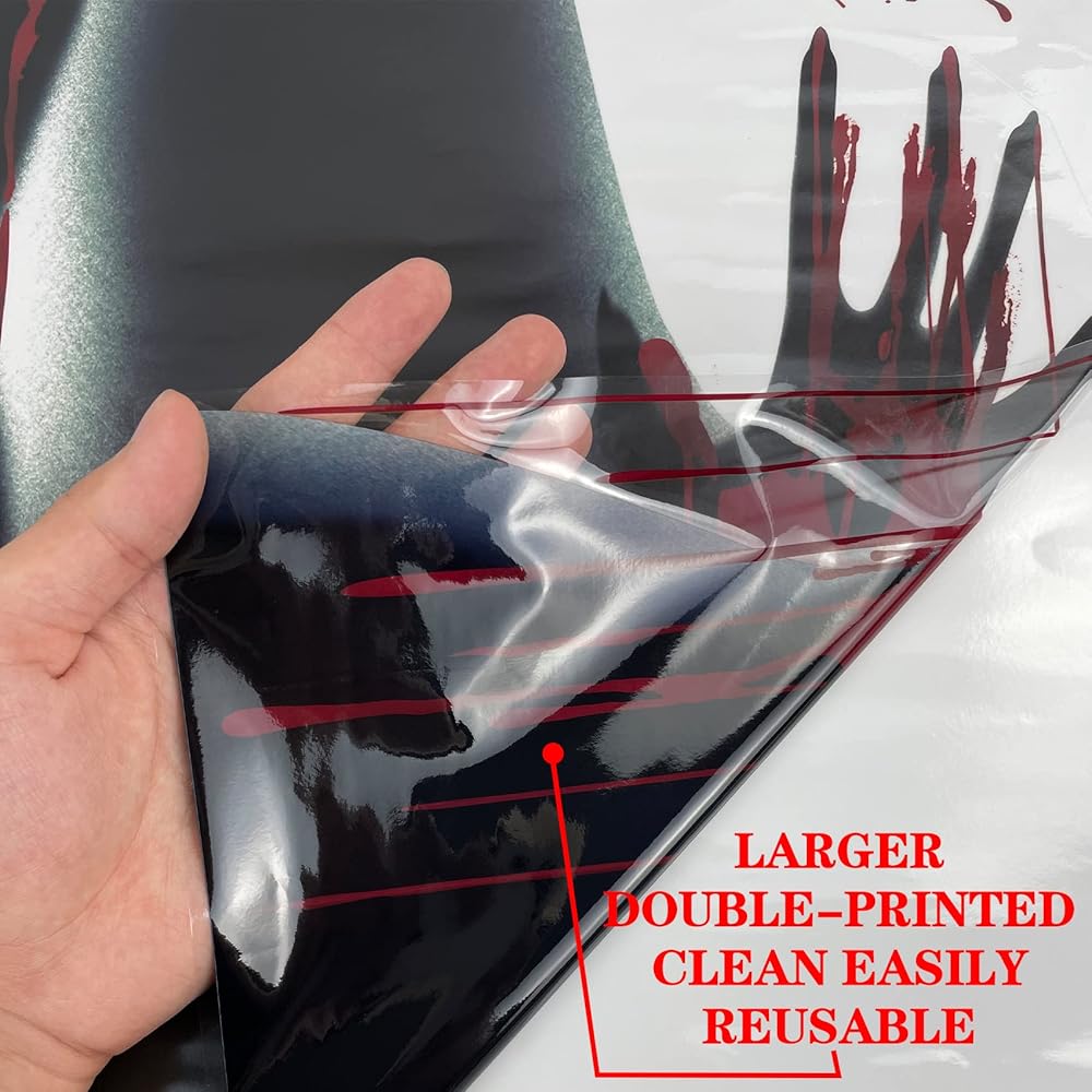【ملصقات نافذة مخيفة تضيف جوًا رائعًا】ملصقات نافذة كبيرة للهالوين بطباعة يد دموية لإضافة لمسة إلى نافذتك والمرايا والحمام ومنزلك وما إلى ذلك، مما يجعلها أشبه بمشهد مخيف كبير، كديكور رائع للهالوين، تلتصق النوافذ المخيفة ببقع الدم هذه. جذب الناس إلى منزلك. يبدو أن الصورة الظلية لنافذة الهالوين هي مشهد قتل كامل وحقيقي.