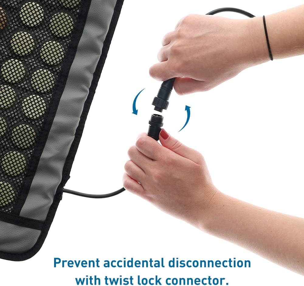BODYMED FAR INFRARED HEATING PAD - DEEP TISSUE HEAT THERAPY - PAIN RELIEF FOR BACK, NECK, AND BODY The BodyMed Far Infrared Heating Pad is a type of deep heating modality that uses far infrared waves to penetrate into the muscle for long-lasting therapeutic pain relief. Its flexibility allows the pad to be wrapped around various body parts where treatment is needed. This deep tissue heating pad is designed with negative ion technology and features 7 rows of premium natural gemstones and tourmaline stones that help transfer heat to the body. With safety in mind, this heat therapy pad is manufactured for DC voltage and is electromagnetic field (EMF) free. Included is a digital controller with an auto shut-off, adjustable temperature (103 F -159 F (40 C - 70 C)), and timer settings (0 to 240 minutes) plus memory function. To use, position the pad directly over the affected area. The pad should be placed so that the stones face the body. It is recommended to use a protective layer between the yourself and the pad. One (1) far infrared heating pad