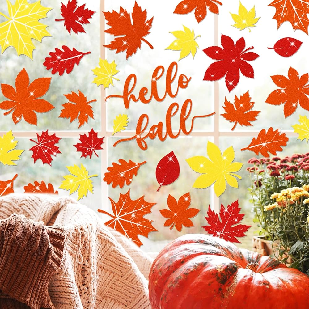 تصميم أوراق القيقب - 9 أوراق ملصقات نافذة الخريف جميعها بتصميمات مختلفة، مقاس كل ورقة 20 × 30 سم / 7.8 × 11.8 بوصة، مطبوعة بصور أوراق القيقب الكلاسيكية مع القرع، جنبًا إلى جنب مع حروف التهنئة، الخريف، الشكر، المبارك، ممتن، تتناسب بشكل جيد مع أجواء فصل الخريف.