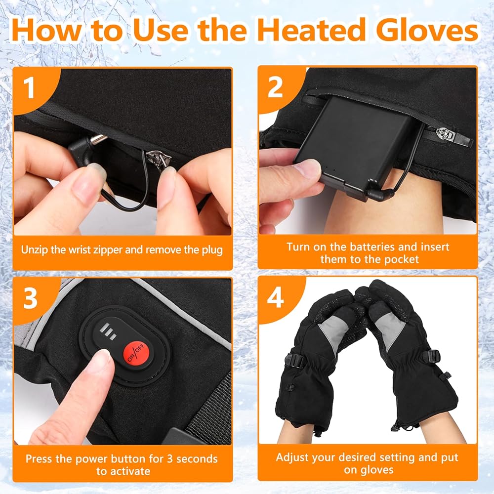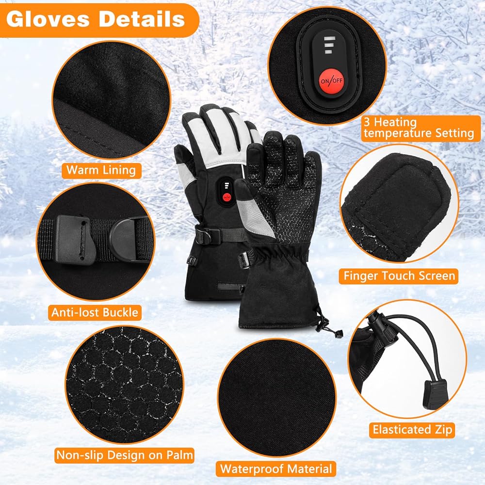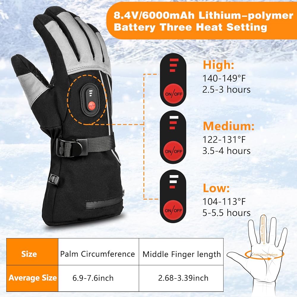 قفازات ساخنة للرجال والنساء، قفازات تسخين مطورة قابلة لإعادة الشحن مع 3 أوضاع لدرجة الحرارة، قفازات شتوية مقاومة للماء 8.4 فولت 6000 مللي أمبير في الساعة، قفازات تدفئة يدوية للدراجات النارية وركوب الدراجات والتزلج والمشي لمسافات طويلة وصيد الأسماك