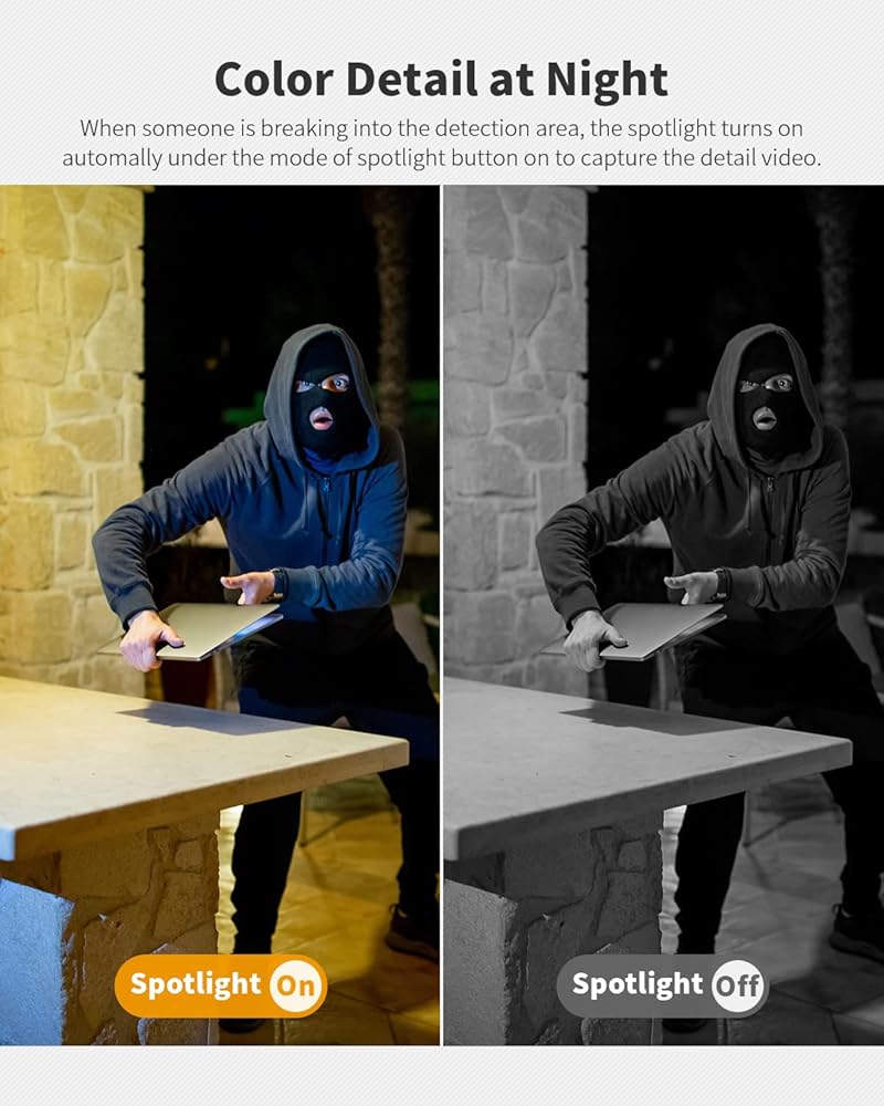 【الوصول إلى الهاتف عن بعد والتبخير المباشر بدقة 2K】 يمكنك الوصول إلى كاميرا أمان Verizon عن بُعد عبر هاتفك والحصول على نظرة عامة في الوقت الفعلي على الممتلكات الخاصة بك. يمكنك التقاط صور ومقاطع فيديو بدقة 2K ليلاً ونهارًا باستخدام ضوء موضعي مدمج ومستشعر صور متقدم.