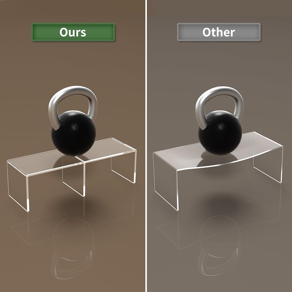 【متينة وقوية】على عكس رافعات العرض الأخرى المنحنية على كلا الجانبين ولا تحتوي على دعم في المنتصف لسهولة الترهل، فإن رافعات الأكريليك الخاصة بنا منحنية على كلا جانبي الجانب الطويل، والتي يمكنها تحمل العناصر الأثقل والحصول على حمل أفضل. السمة للشئ.