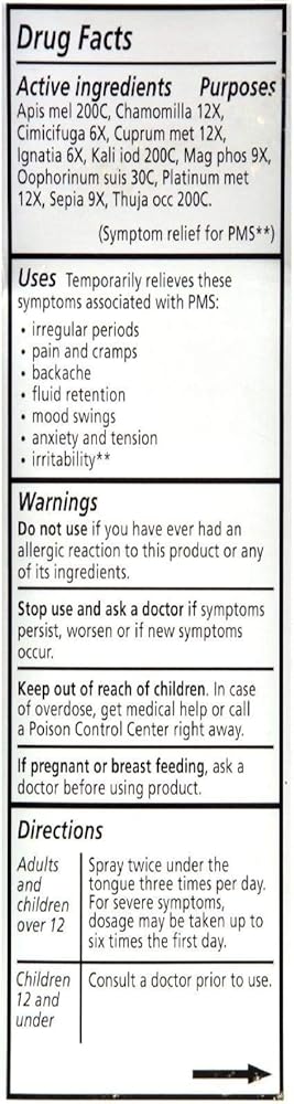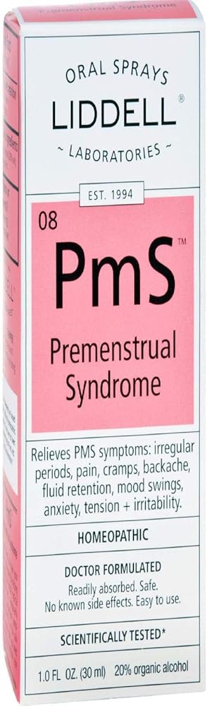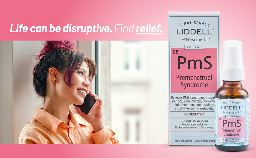 Restore your natural cyclical balance! Some women think PMS stands for pretty miserable syndrome. If cramps, emotional fluctuations and fluid retention are making you crazy - it's time for PMS by Liddell. This life-enhancing product can also help to rebalance irregular menstruation. Two sublingual sprays three times a day is all that is needed to provide natural, holistic relief! Relieves symptoms associated with PMS, such as: Irregular periods Pain and cramps Fluid retention Mood swing.