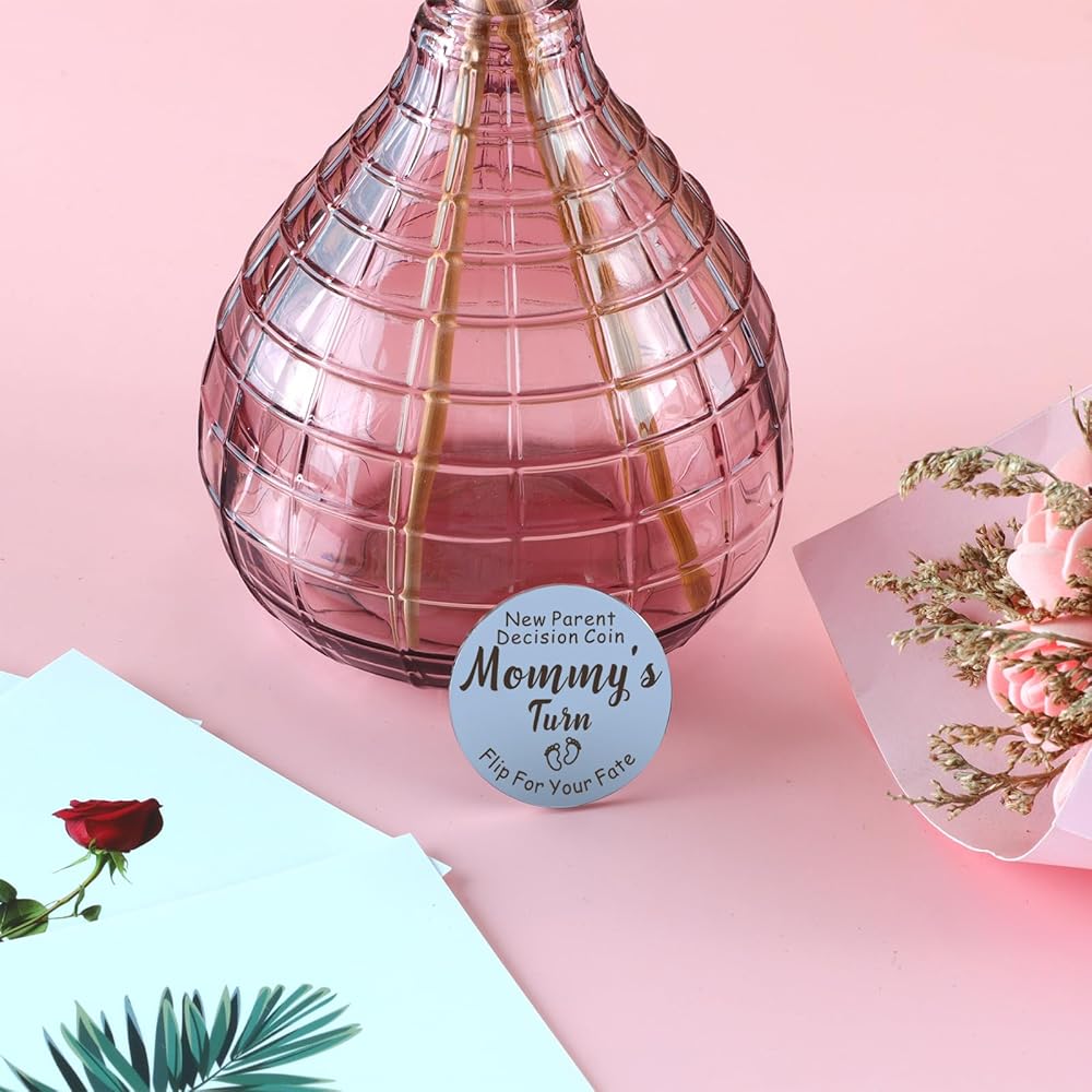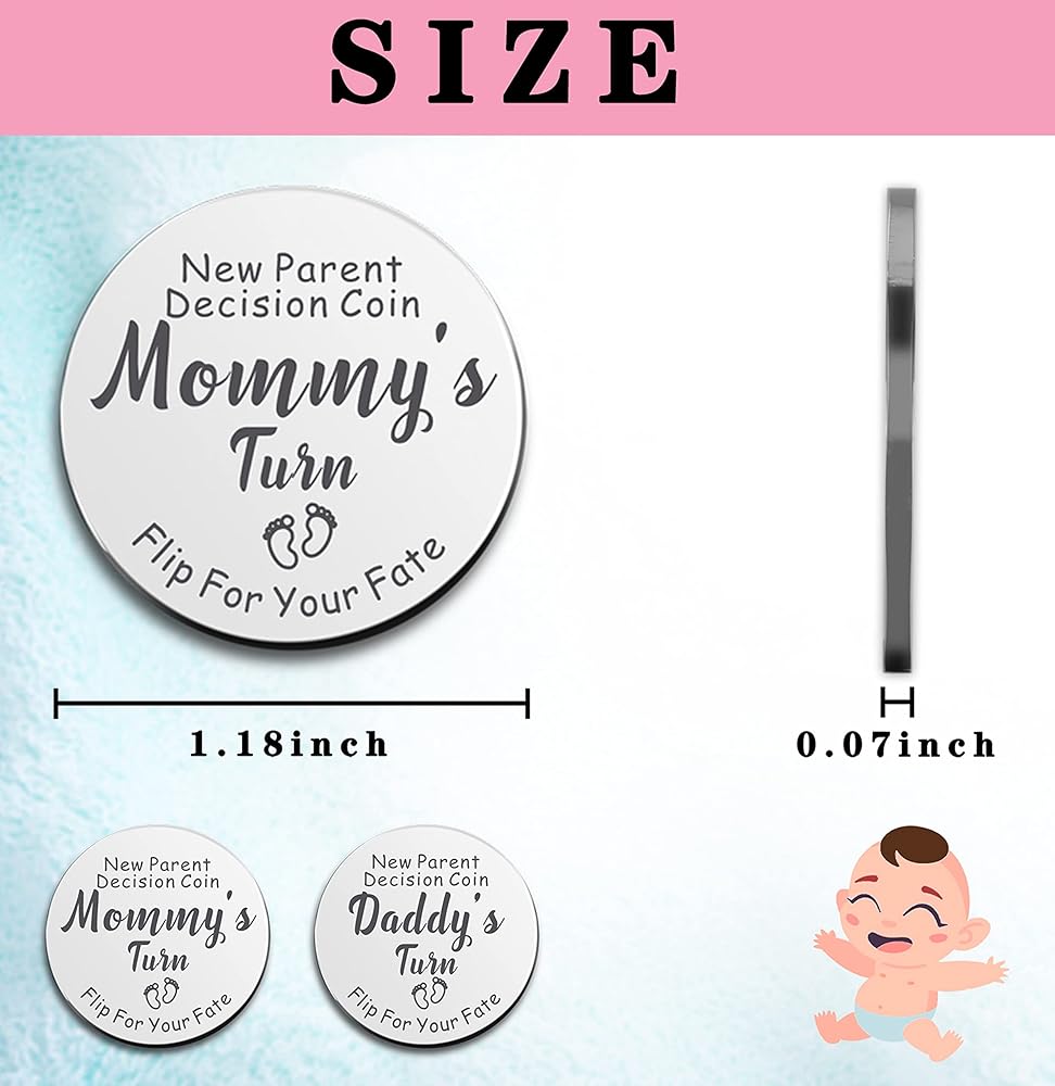 3.【هدية للصديقة الحامل】: هذه العملة محفورة بكلمة مضحكة: "عملة قرار الوالدين الجديدة، ماميز تيرن دادي تتحول إلى مصيرك"، استخدم هذه العملة كنعمة دافئة في أعياد ميلاد الطفل، الولادة في المستشفى، الكشف عن جنس الطفل.