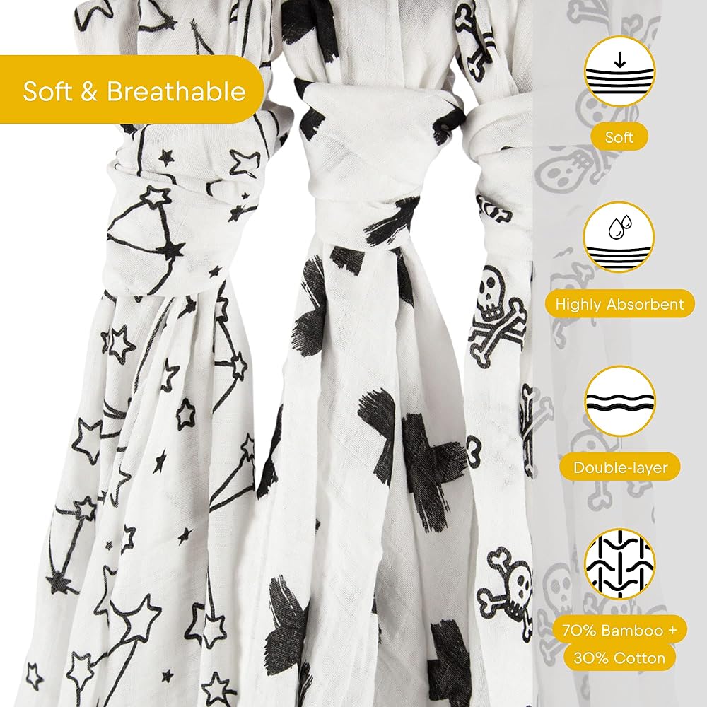 HIGH-QUALITY MATERIAL: Made with premium quality woven fabric. 70% Bamboo and 30% Cotton. Generously sized at 120 cm x 120 cm (47 in x 47 in). Large enough to swaddle newborns, provide a play space on the floor, or to cover strollers and block out the sun?s harsh rays.