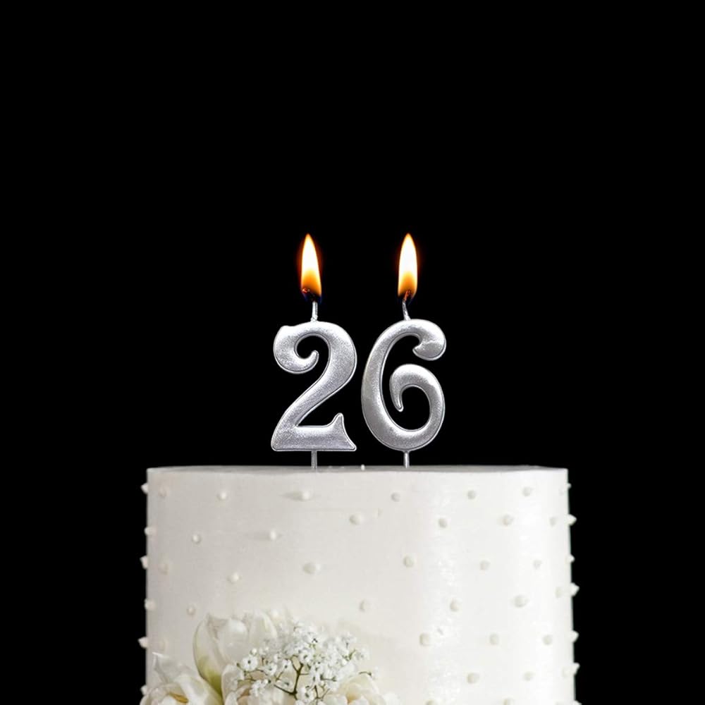 شمعة رقمية لعيد الميلاد السادس والعشرين من MAGJUCHE فضية اللون رقم 26 شموع لتزيين الحفلات للنساء والرجال