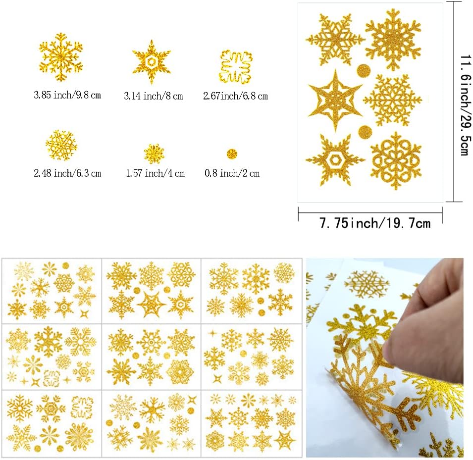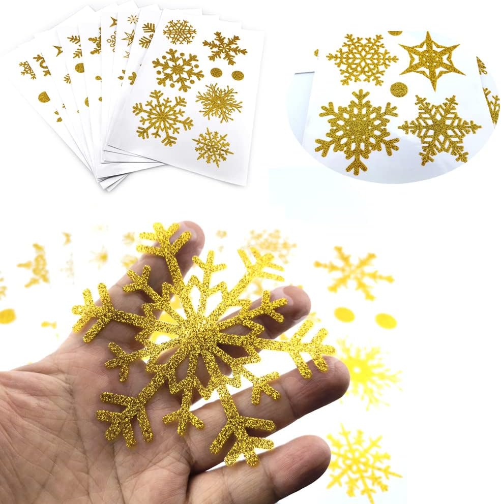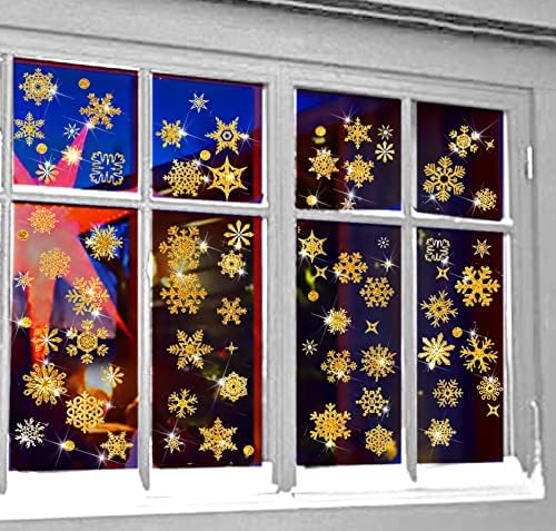 9 أوراق لامعة ذهبية على شكل ندفة الثلج من فازبيري، ملصقات ثابتة للزجاج لعيد الميلاد والعطلات وديكور الشتاء
