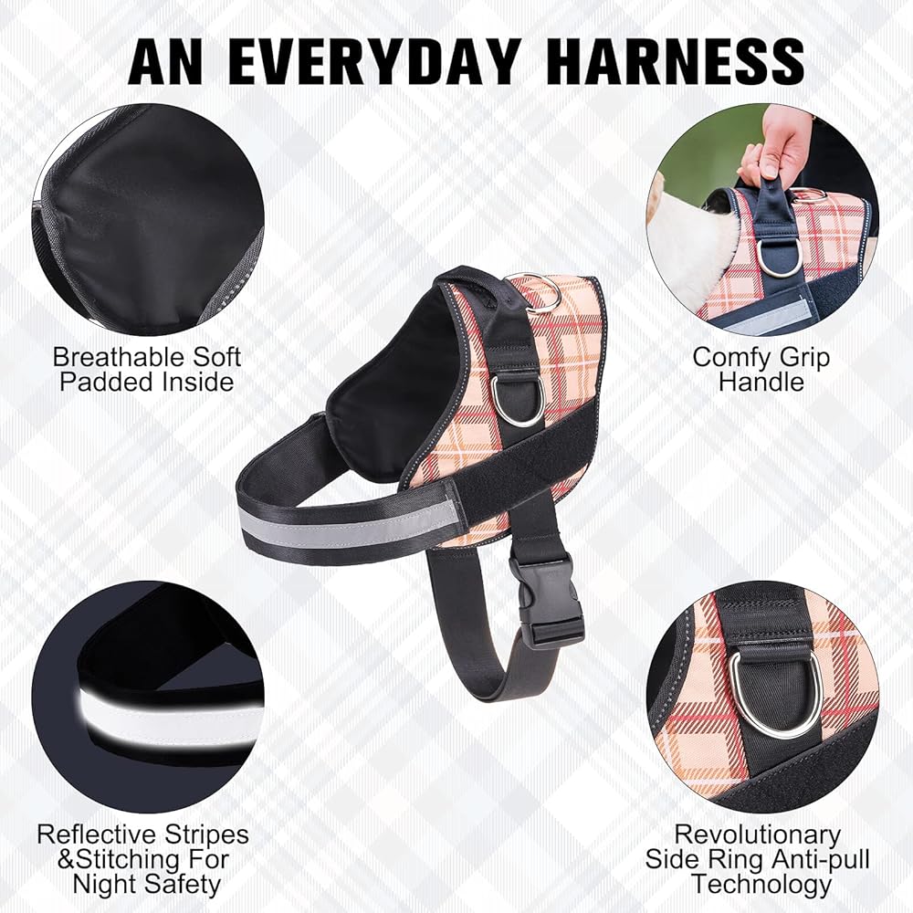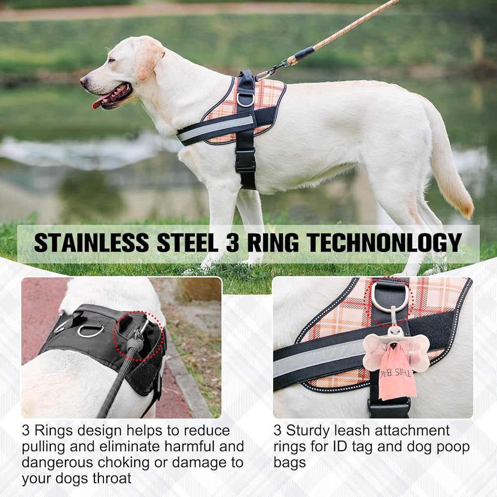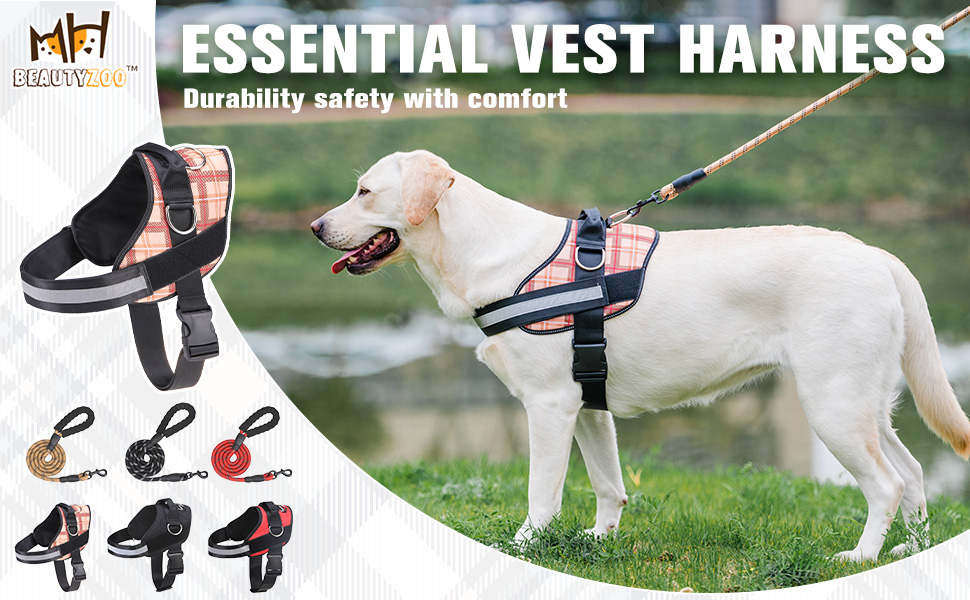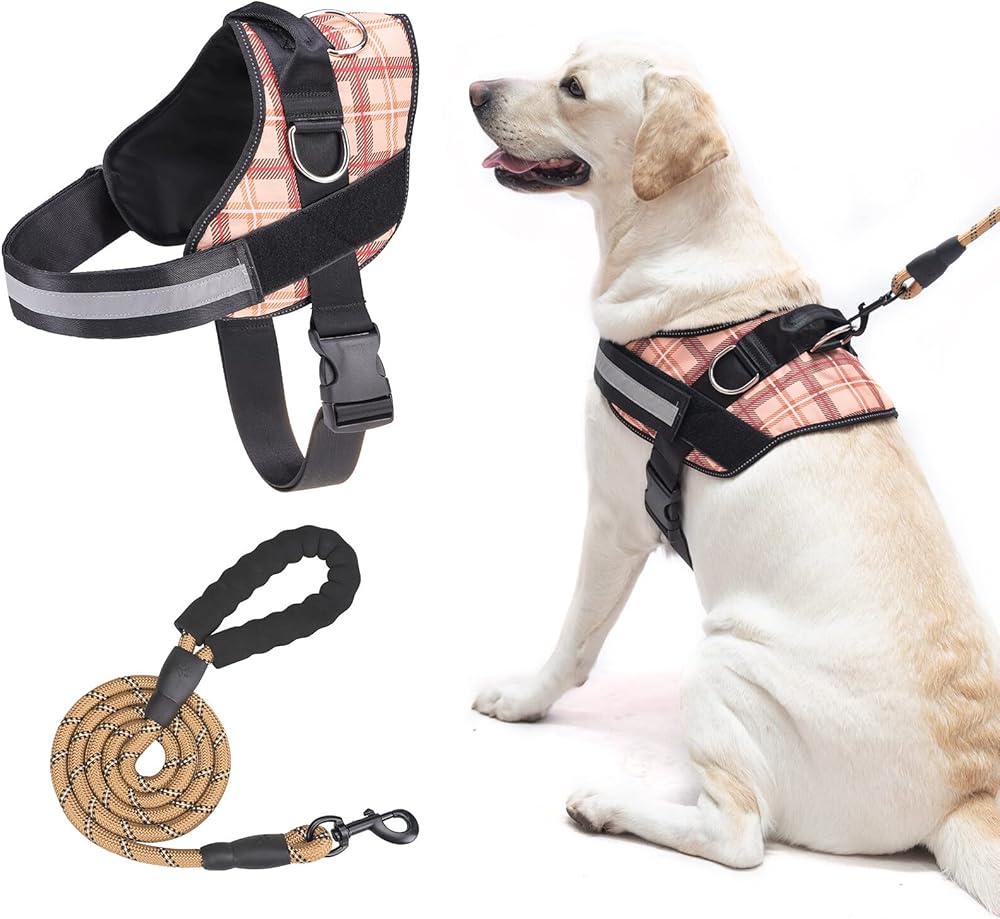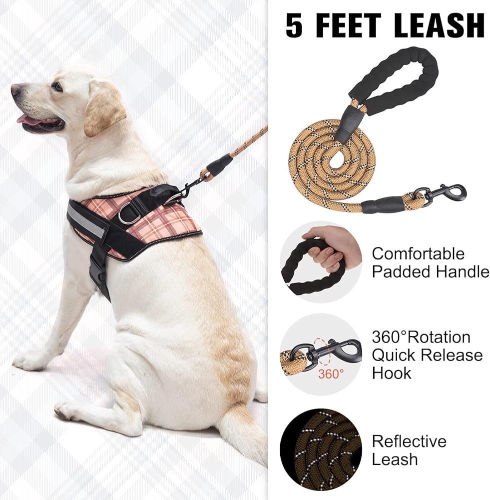 بيوتيزو الكلب تسخير للكلاب المتوسطة الكبيرة لا سحب، تسخير الكلب والمقود مجموعة مع مقبض مبطن، لا خنق الخدمة الثقيلة الكلب يسخر سترة حجم ML XL، عاكس سترة تسخير قابل للتعديل