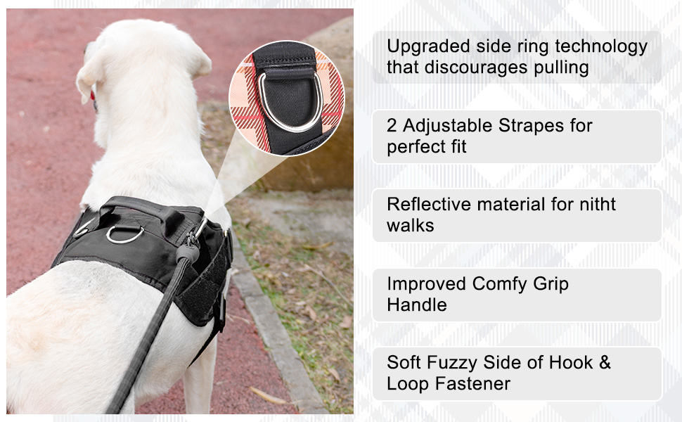 سترة تدريب الكلاب لجميع الأغراض: سرج للكلاب لا يسمح بالسحب مزود بأشرطة عاكسة لضمان رؤية كلبك بشكل واضح والحفاظ على سلامة الكلاب في الليل. مع مقبض نايلون متين يسهل التحكم فيه في الشوارع المزدحمة. يُعد سرج الحيوانات الأليفة مثاليًا للمشي اليومي والجري والمشي لمسافات طويلة والتدريب والصيد والمغامرة الخارجية والمزيد!