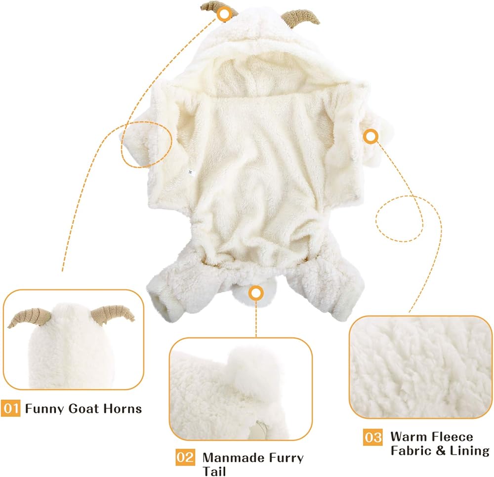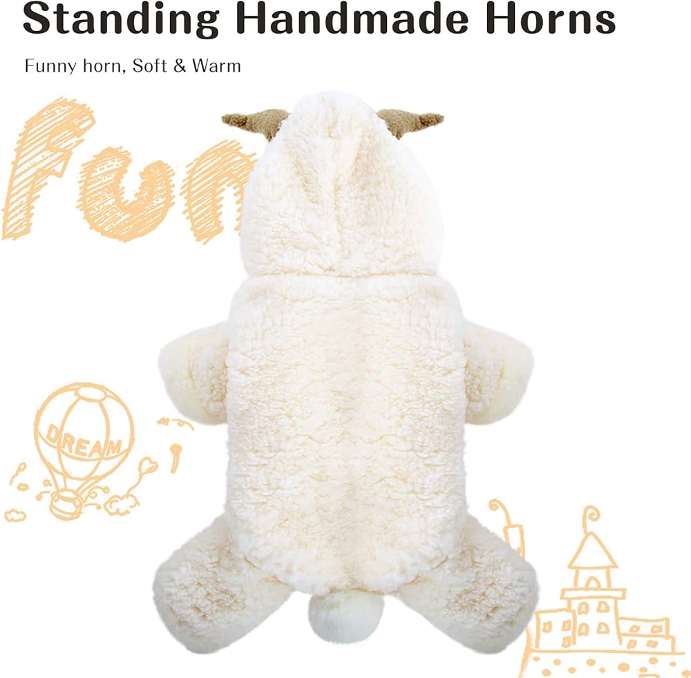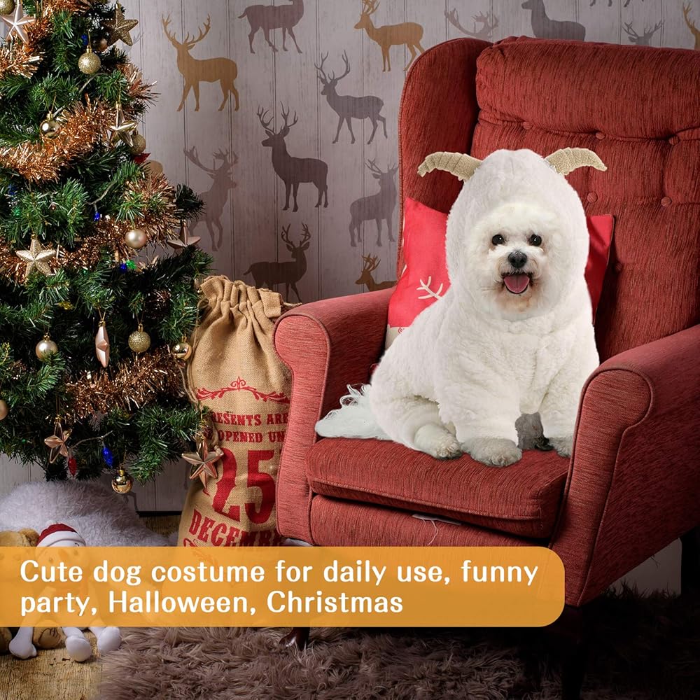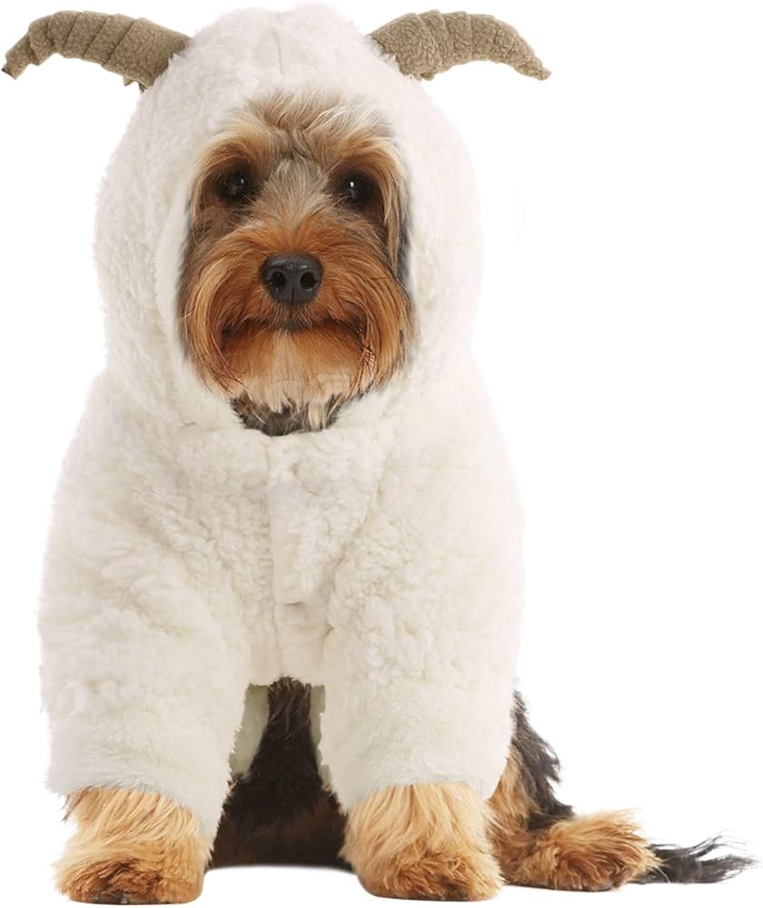 زي Queenmore للهالوين للكلاب الصغيرة، معطف بغطاء للرأس من الصوف الناعم للحيوانات الأليفة، زي ماعز الرنة لعيد الميلاد للكلاب الصغيرة، الشيواوا، اليوركشاير، كلب صغير طويل الشعر، كلاب بودل الشاي (بني، M)