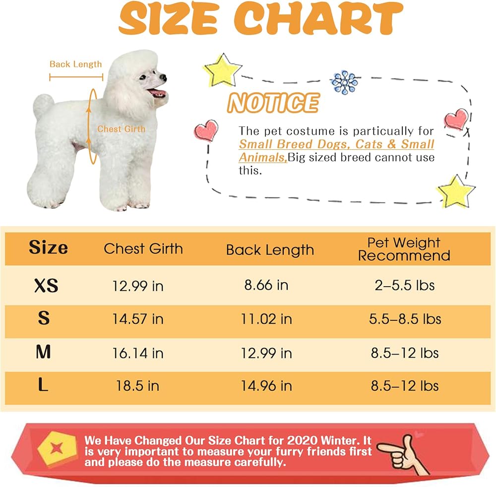 • 【ملابس الكلاب للكلاب الصغيرة والجراء فقط】- ملابس الكلاب ذات الأرجل الأربعة مخصصة خصيصًا للكلاب الصغيرة والجراء والقطط. من أجل العثور على أفضل ملاءمة، يرجى قياس حيوانك الأليف أولاً واختيار المقاس بعد ذلك. يرجى اتباع جدول المقاسات الخاص بنا للعثور على طريقة القياس الصحيحة.