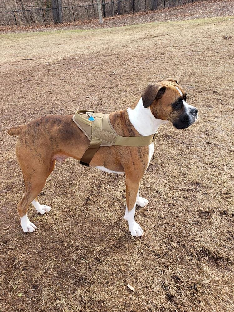 • حلقة على شكل حرف D ولوحة تعريف لاصقة سحرية - تحتوي سترة الكلاب العسكرية على حلقة معدنية على شكل حرف D يمكن ربطها بمقود الكلب المطاطي التكتيكي، مما يسمح لكلبك بالتحرك بحرية من حولك. يمكنك أيضًا وضع التصحيحات التي تريدها.