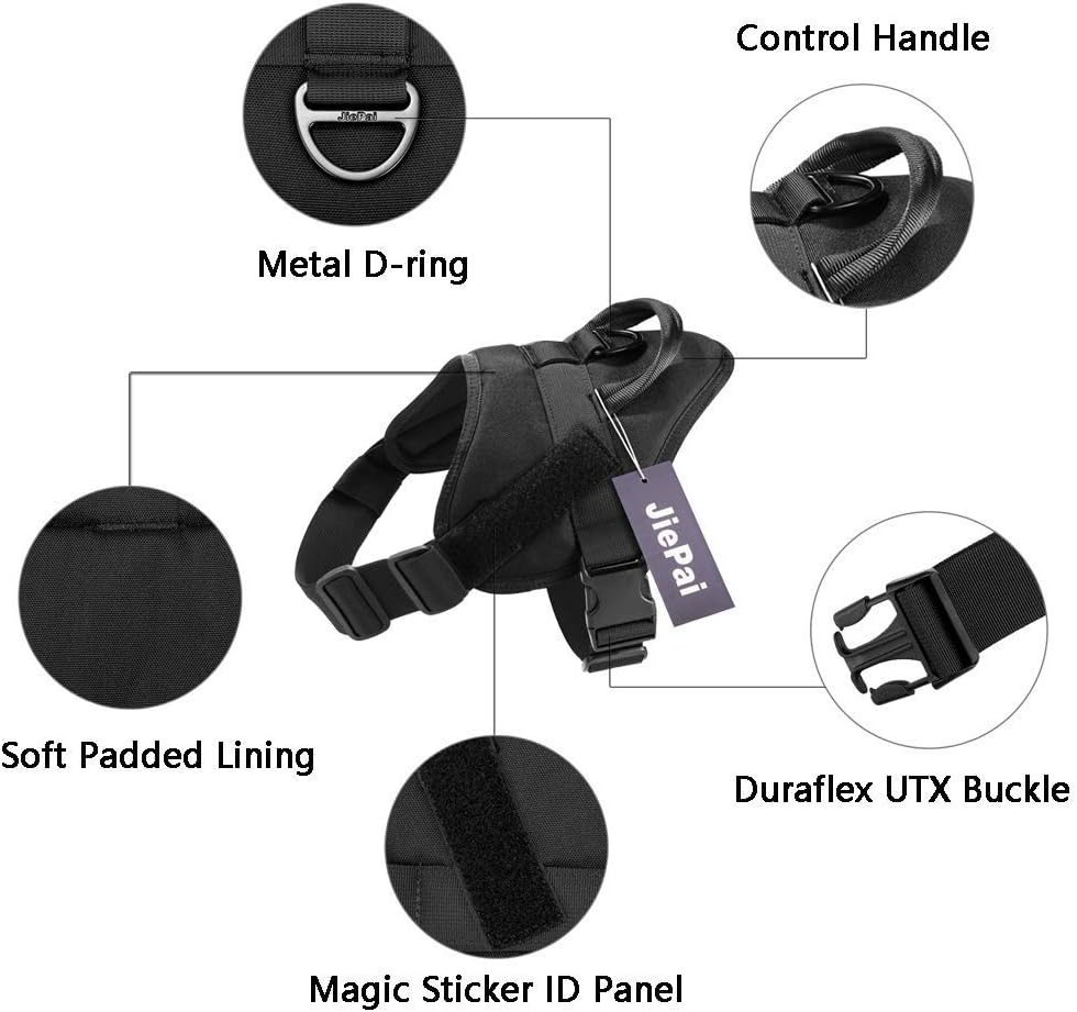 سرج JiePai التكتيكي للكلاب الكبيرة بدون سحب، سرج الكلاب العسكري (أسود، L)