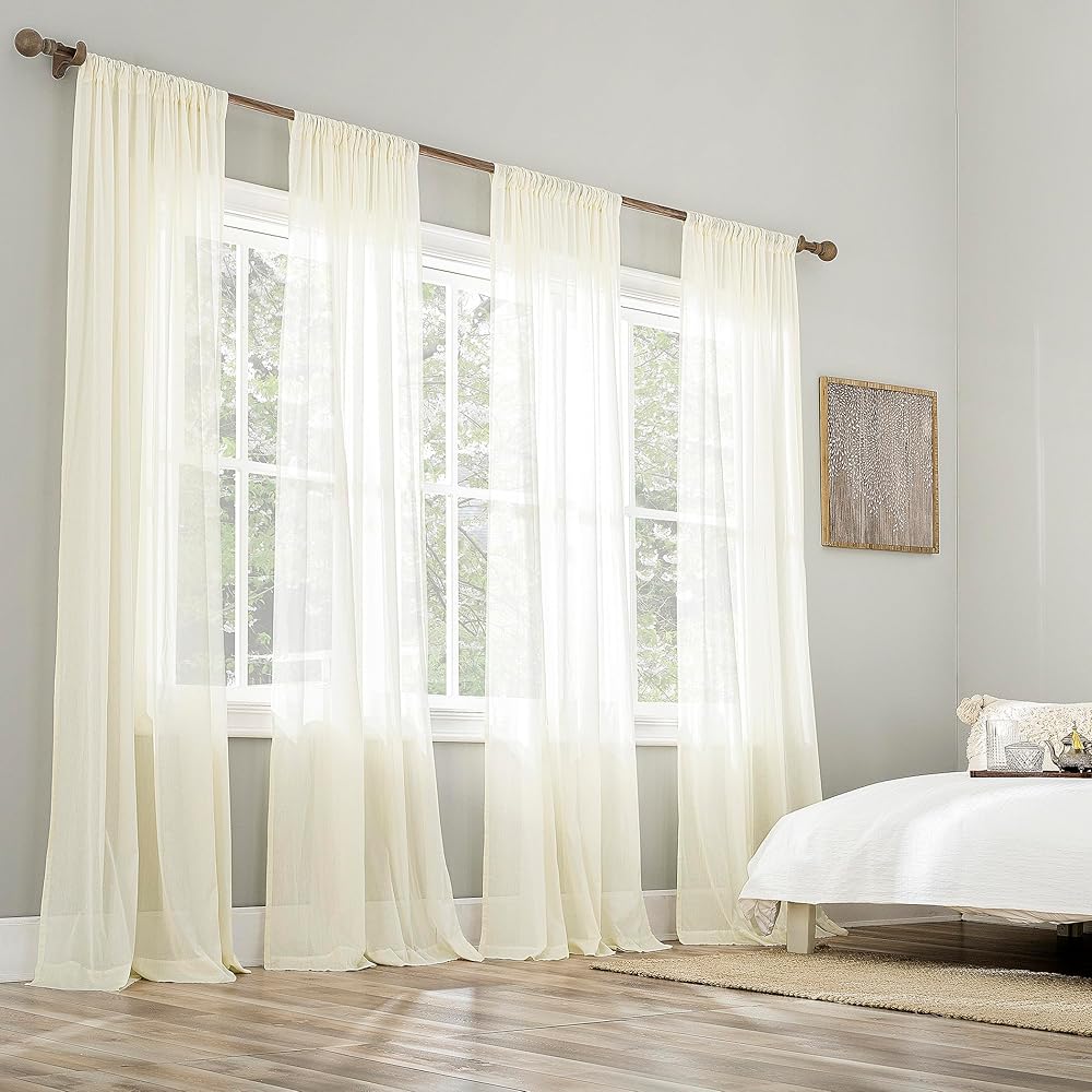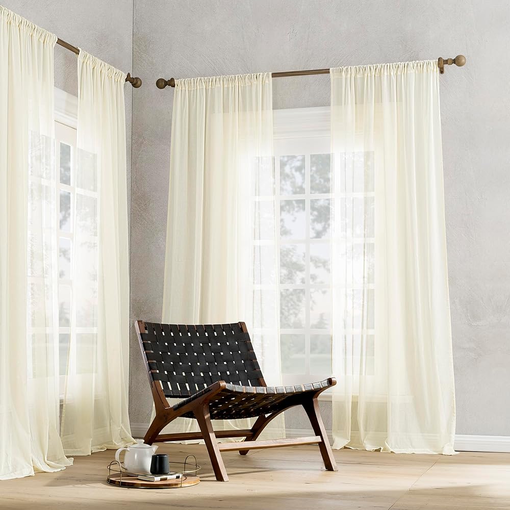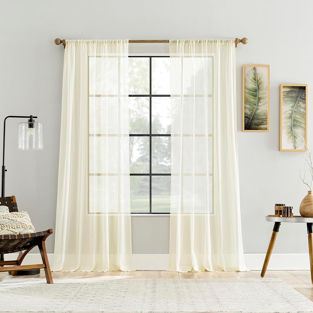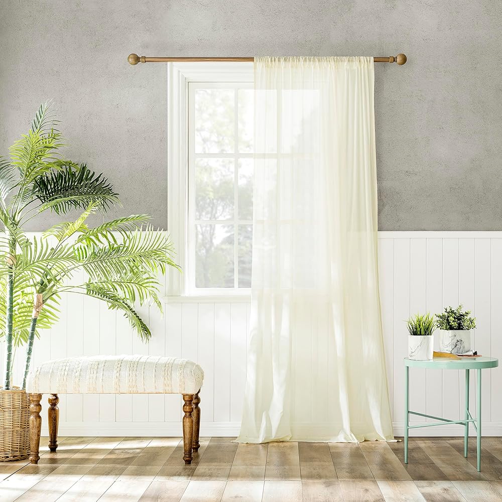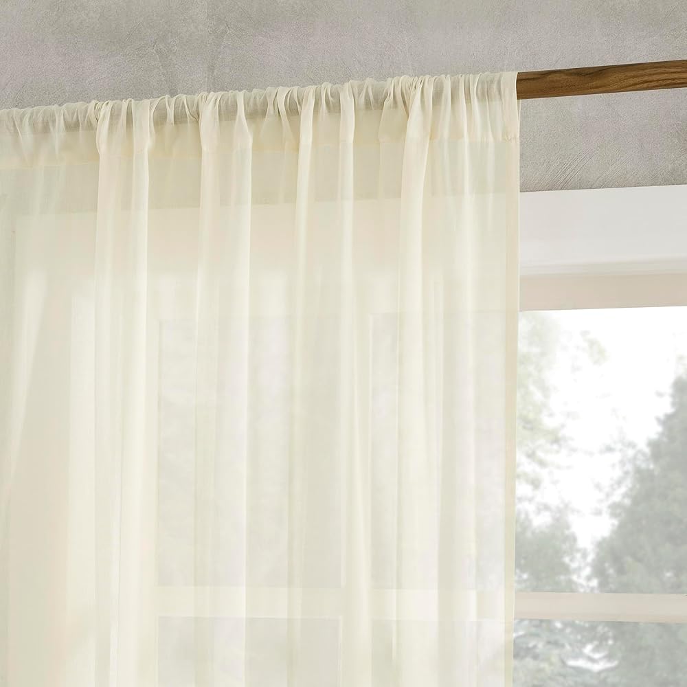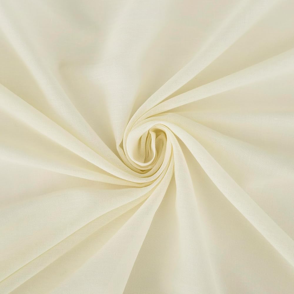 These cotton sheer curtain panels are a versatile and stylish way to add a touch of ethereal ambiance to your home décor. Made from high-quality 100% cotton voile fabric, our solid panel offers a lightweight and airy texture that allows natural light to gently filter through creating a soft and inviting atmosphere. The panels are available in a variety of colors and sizes to match any décor. Sold as individual panels measuring 50" width by 63" length in color cream. Measure carefully before selecting your desired size and quantity. Rod not included. Machine wash cold on gentle cycle. Use non-chlorine bleach when needed. Line Dry.
