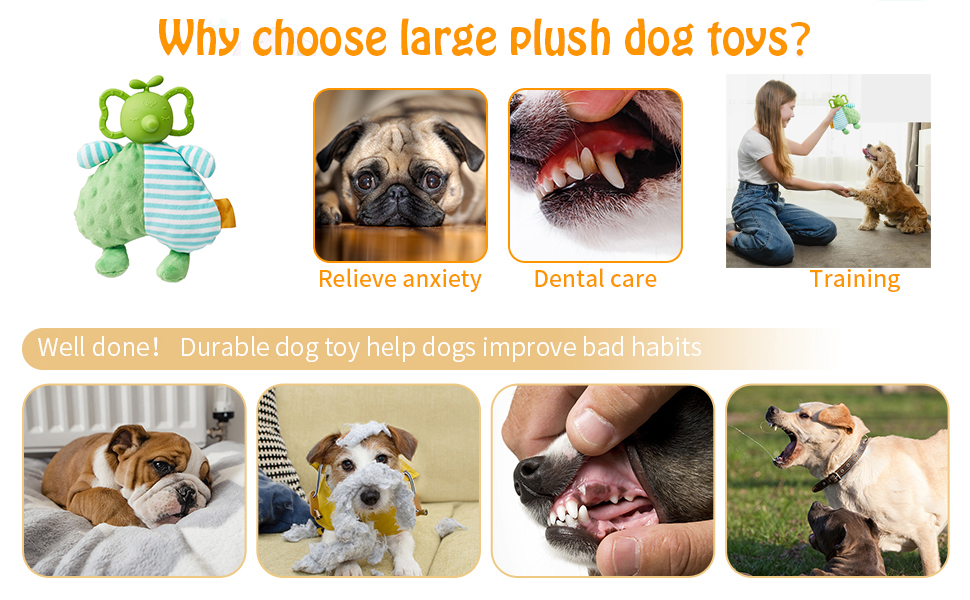 【ألعاب قطيفة للكلاب】: مصنوعة من بوليستر قطيفة عالي الجودة ومحشوة بقطن البولي بروبيلين، ونسيج سميك بخياطة صلبة، وقطن ناعم لملمس مريح للكلاب دون إيذاء اللثة والفم.