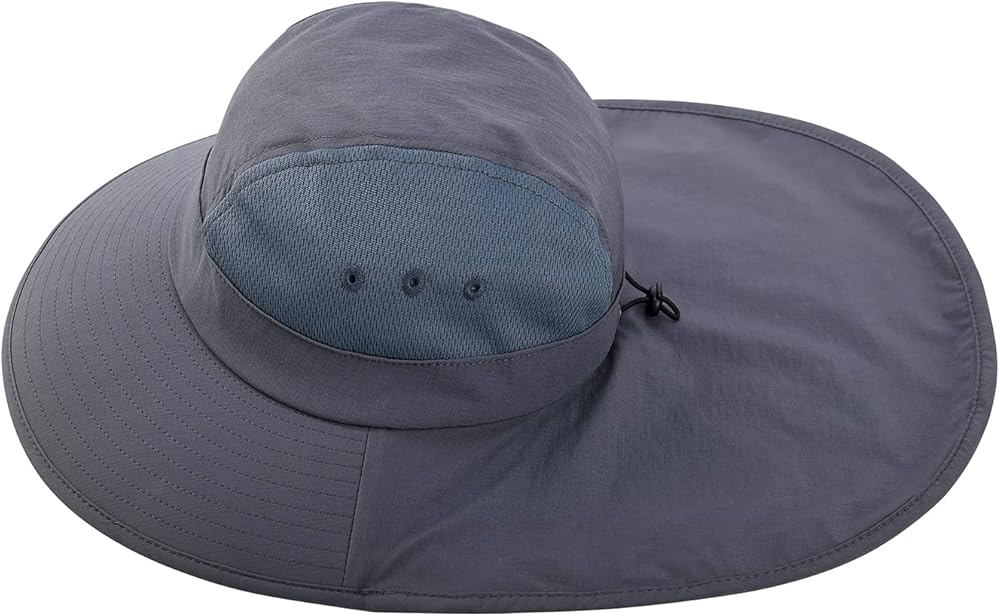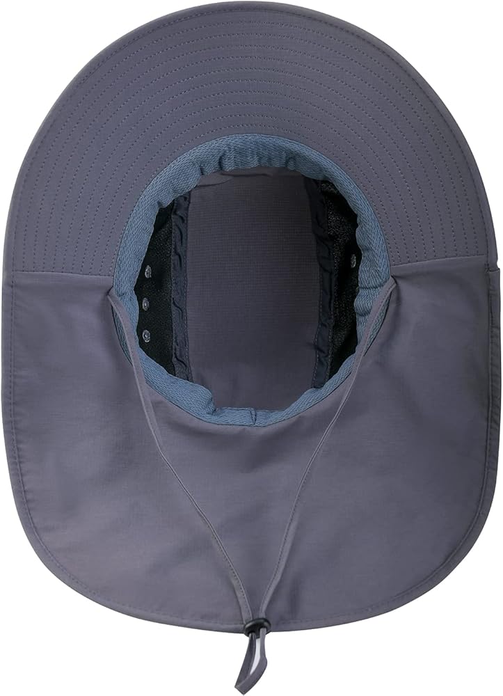 • حافة بعرض 10.16 سم وغطاء خلفي طويل بطول 19.05 سم سيوفر تغطية رائعة للوجه والرقبة والأذنين من الشمس، ولا تزال الحافة العريضة تسمح بمجال رؤية رائع