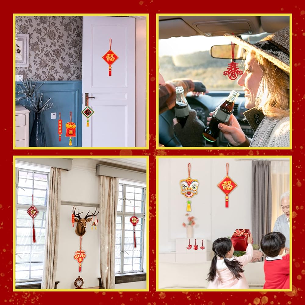 ديكورات رأس السنة الصينية الجديدة: ديكورات السنة الجديدة المعلقة باللون الأحمر هي ديكورات جيدة لمنزلك، مما يخلق جوًا دافئًا ورأس السنة. يمكنك تعليقها على الأبواب والرف والأشجار والنباتات المحفوظة بوعاء والسيارات والأمتعة...